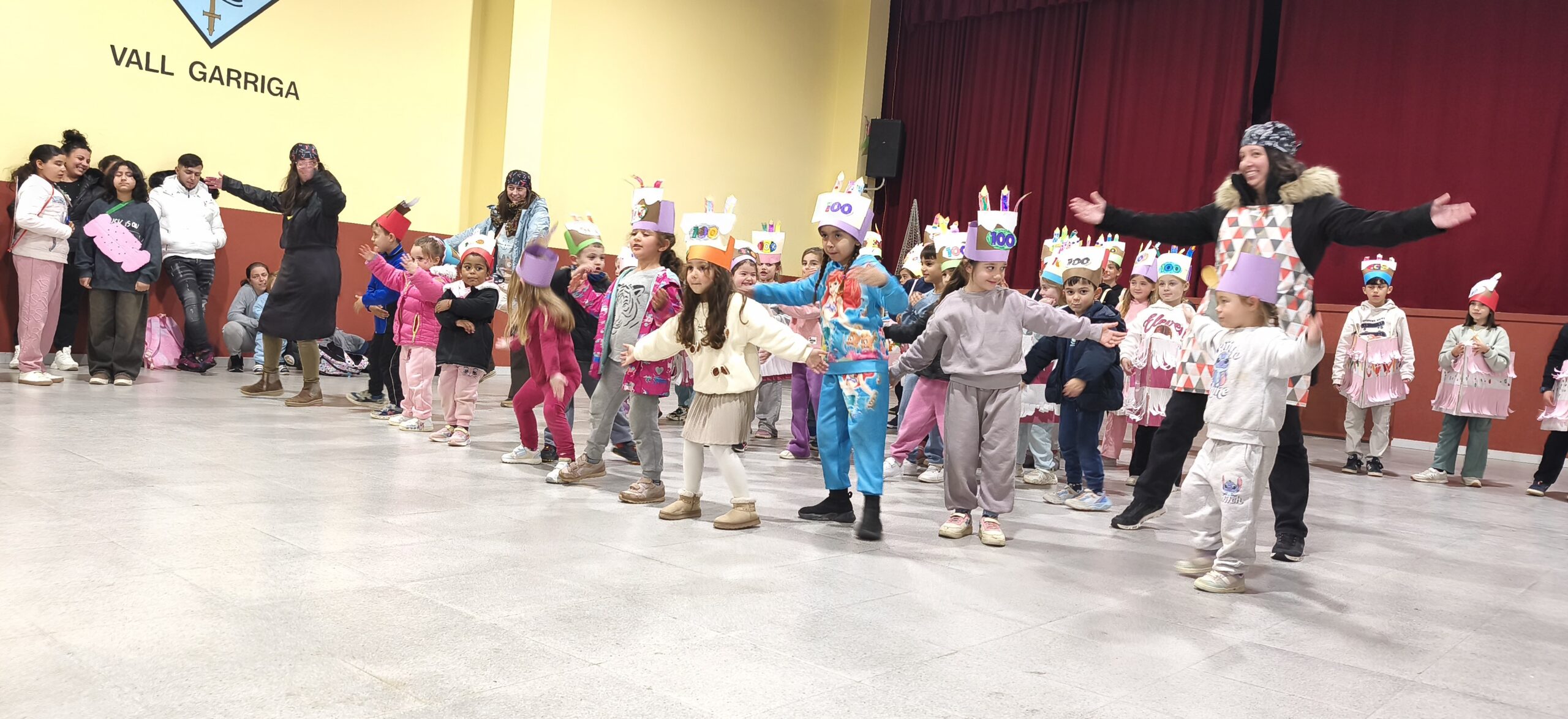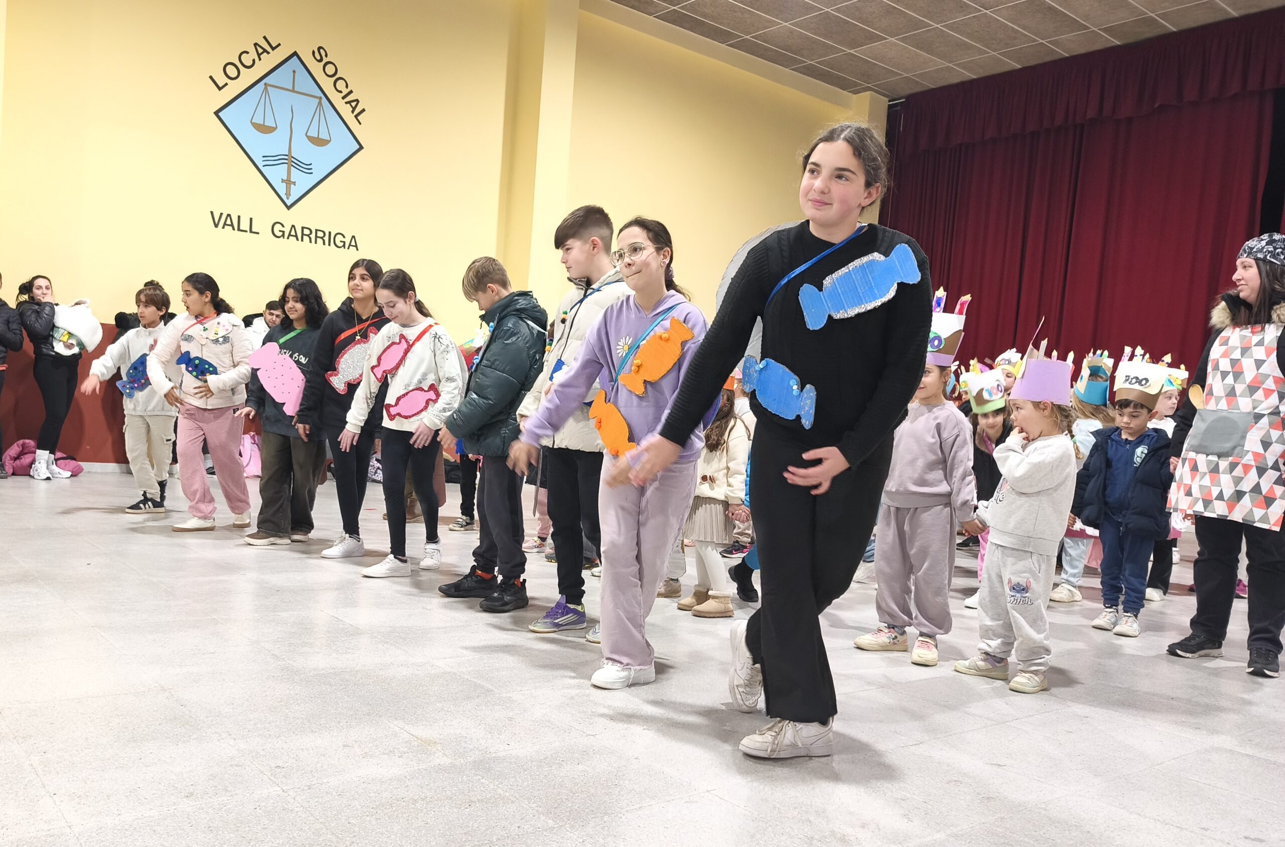 A la tarda, i malgrat la pluja, vam poder celebrar el Carnaval a la Sala. Allà vam ensenyar a les famílies la coreografia que havíem preparat amb la música “¡Qué Festín!” de la Bella i la Bèstia, vam poder ballar èxits de tots els temps i vam poder berenar xocolata desfeta i melindros preparada per l’AFA.