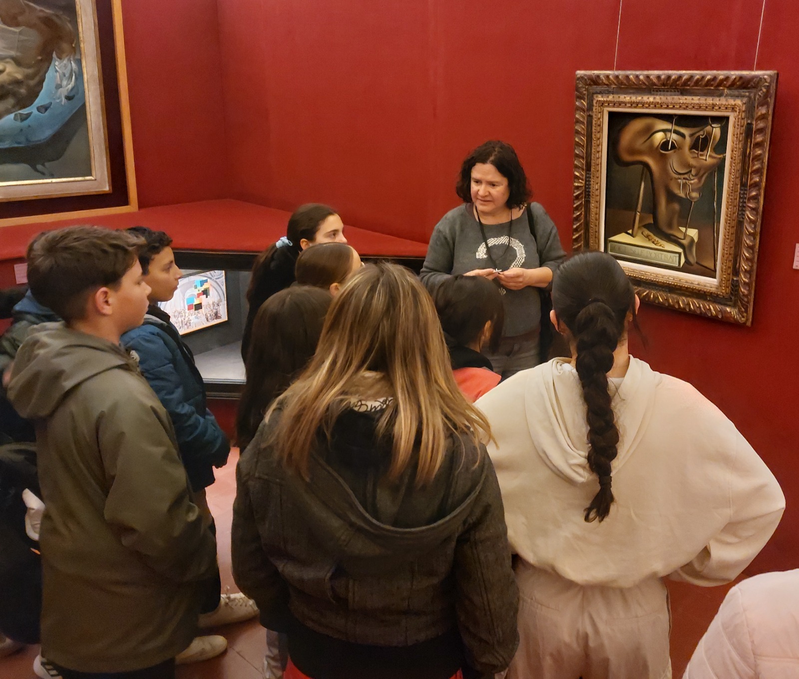 Un cop esmorzats, vam anar cap al Teatre-Museu Dalí on ens hi esperava la Carme, la nostra guia. Amb ella vam descobrir la vida i obra del pintor empordanès. Vam poder veure ploure dins un cotxe, visitar la sala dels tresors i veure com una habitació es transformava en la cara de l’actriu Mae West. Ens van sorgir moltes curiositats sobre l’artista que vam poder anar resolent mentre anàvem visitant el museu.