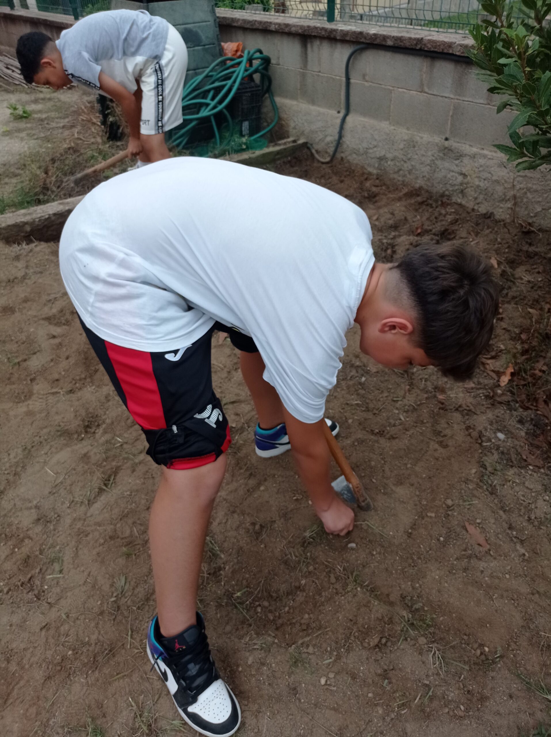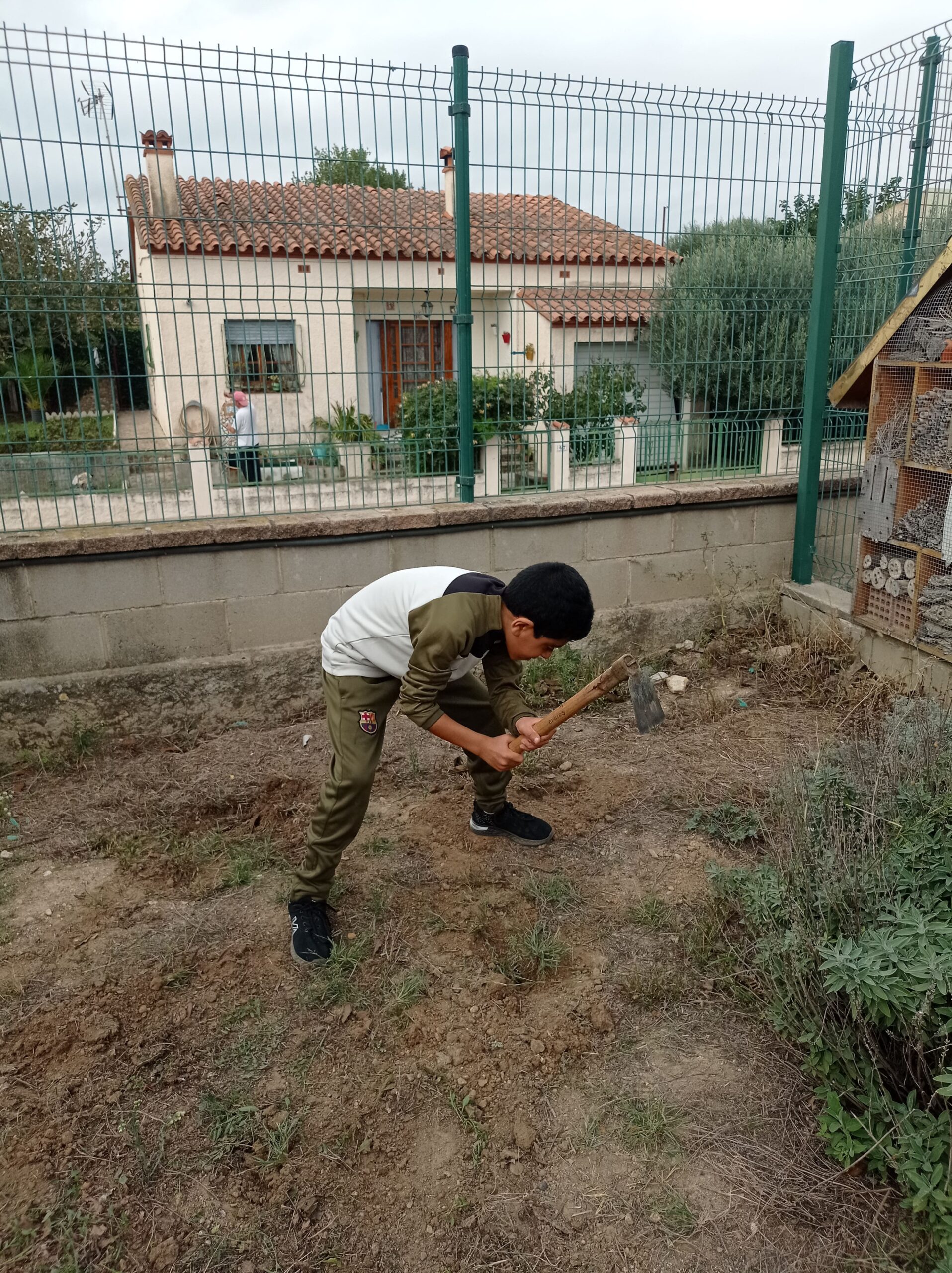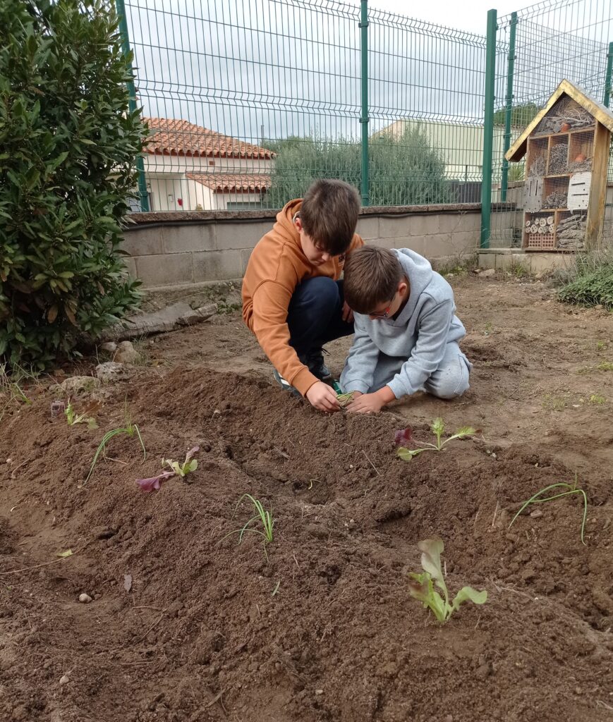 Vam sembrar algunes llavors i vam plantar alguns esqueixos amb molt de compte, seguint els consells d’en Xano que també ens va donar un cop de mà. Cada grup d’alumnes tenia assignades diferents tasques per tenir cura de l’hort.