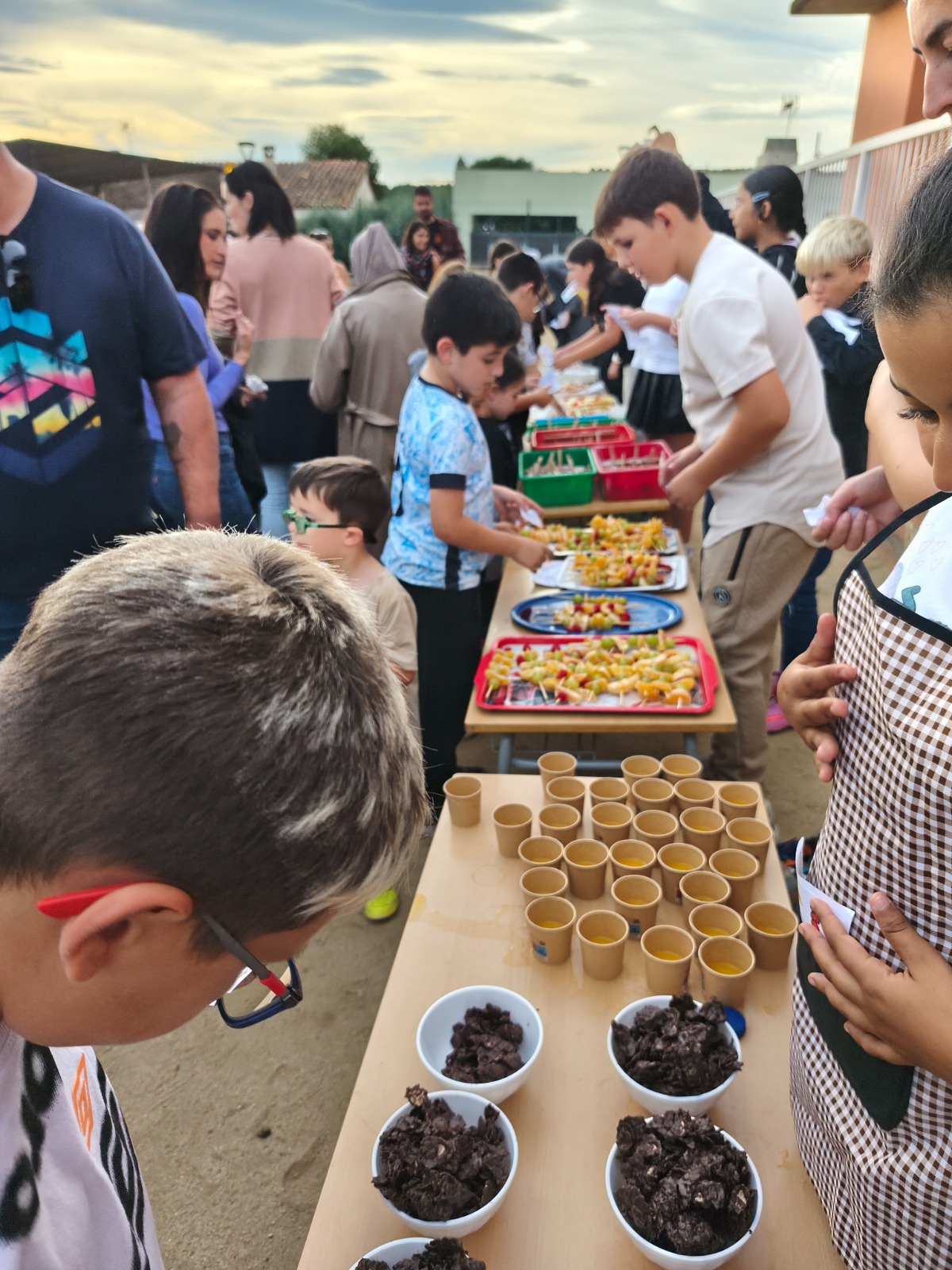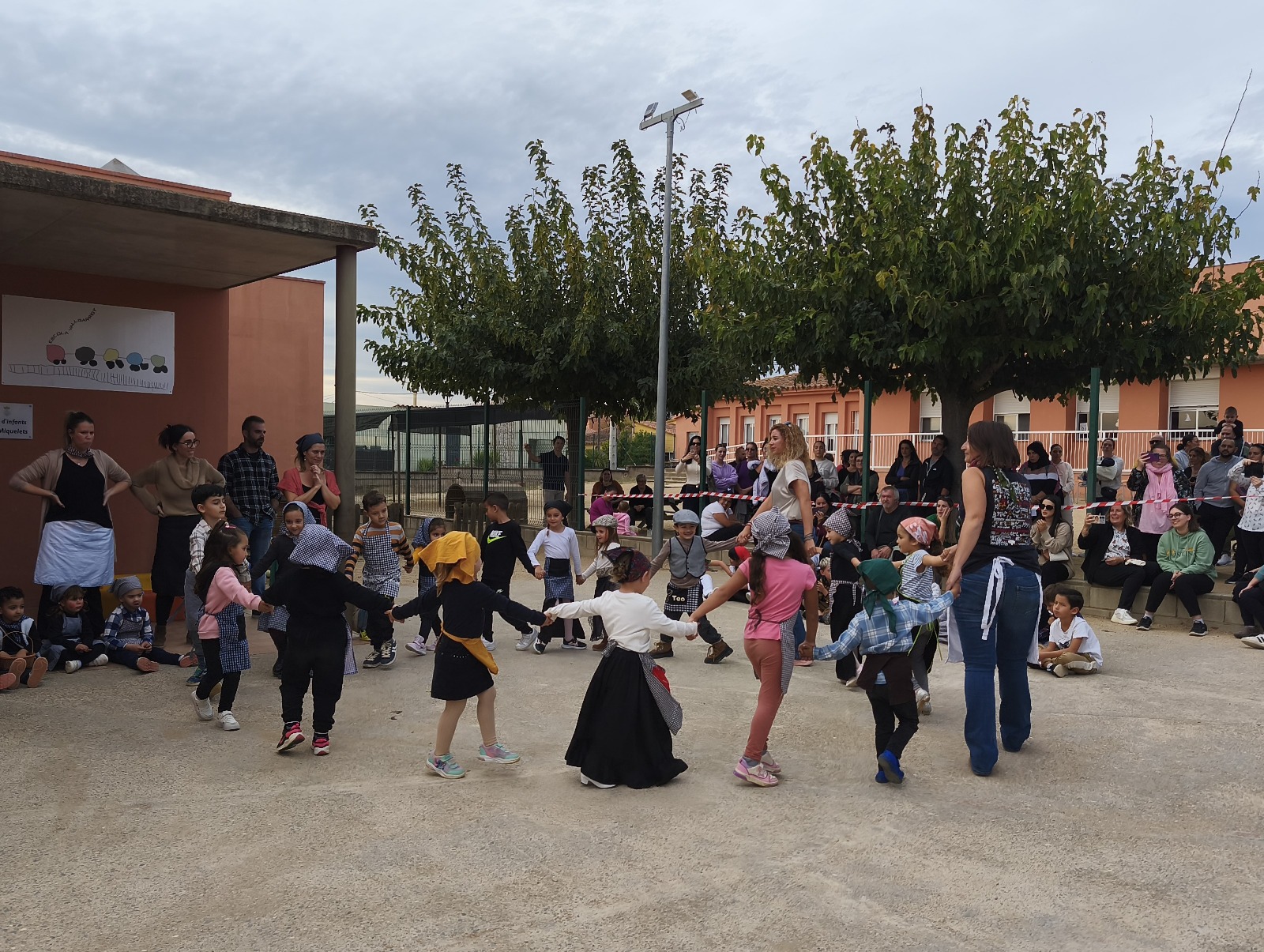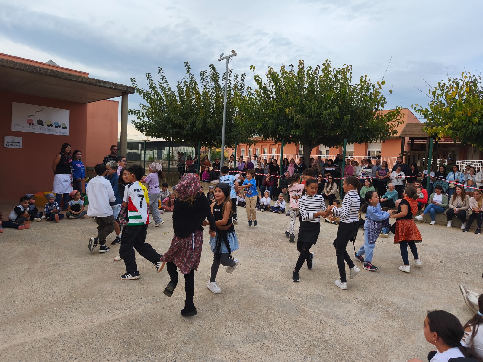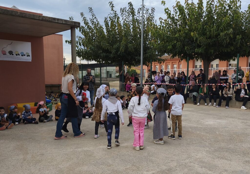 Finalment, a la tarda, les famílies van venir a l’escola per veure com els nens i nenes ballaven les danses que s’havien estat preparant les últimes setmanes. Un cop acabats els balls, els alumnes de Cicle Superior es van encarregar de repartir les castanyes i de gestionar les parades amb els tastets.
