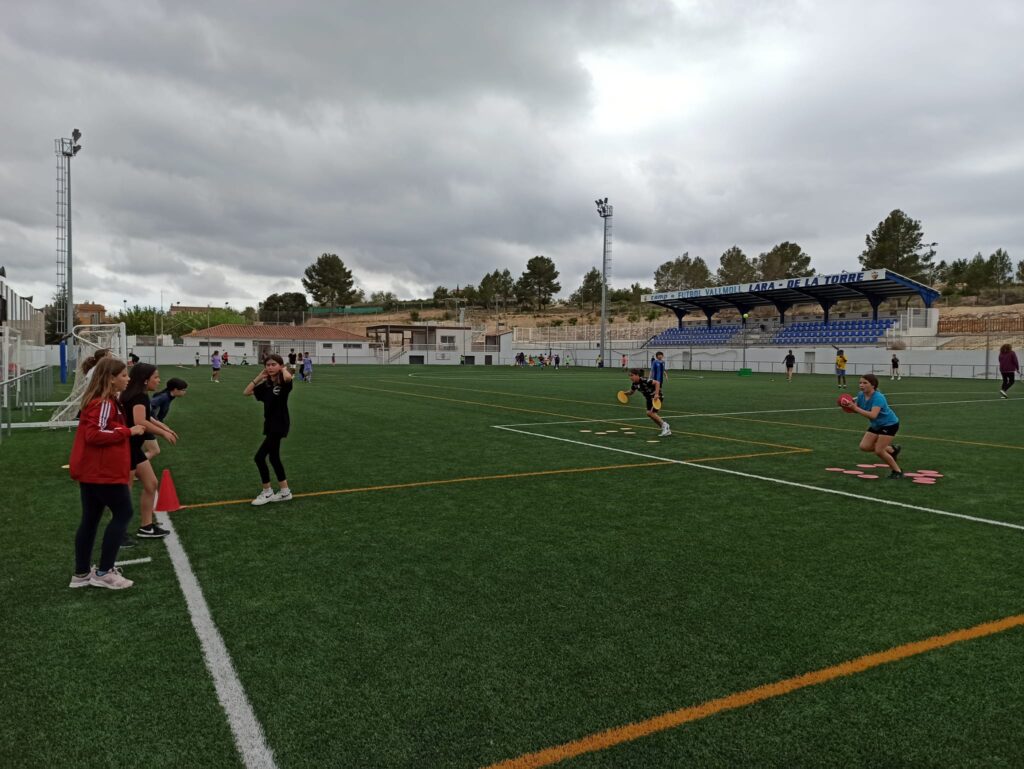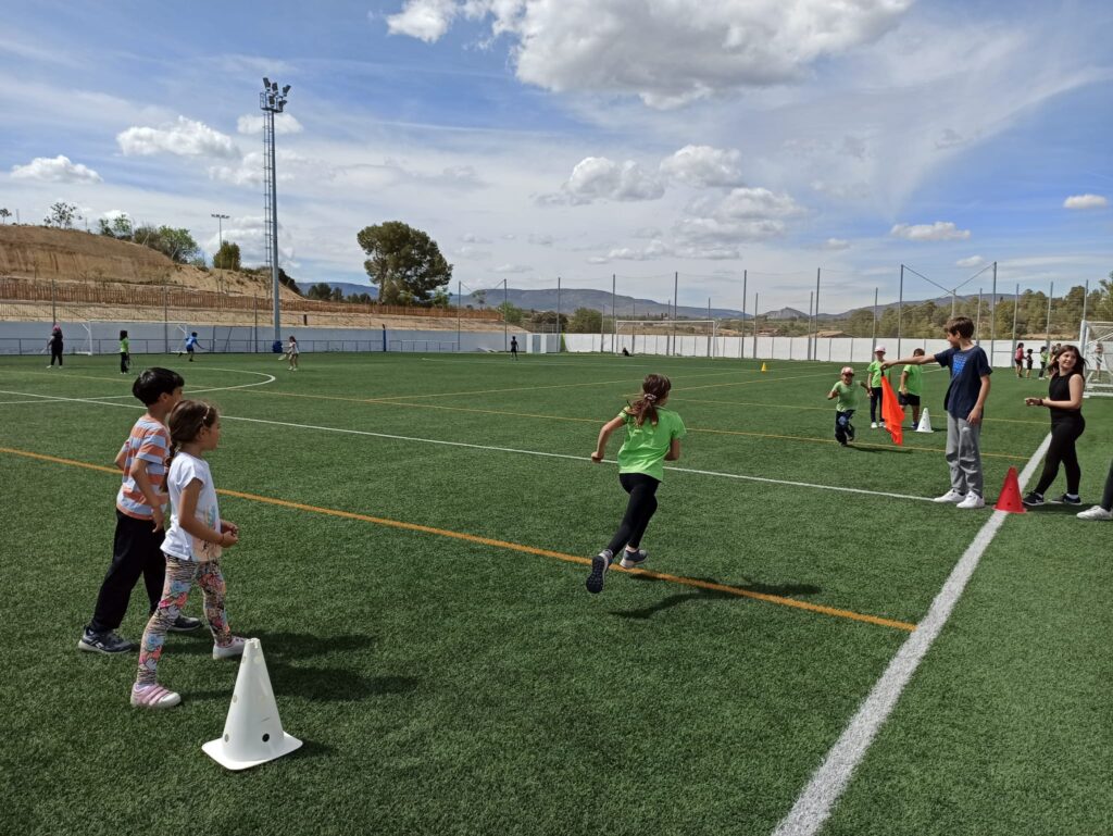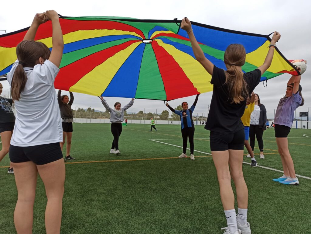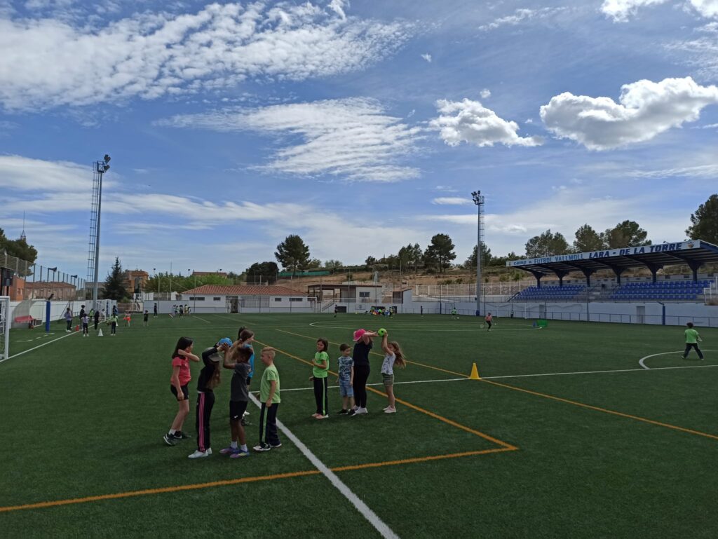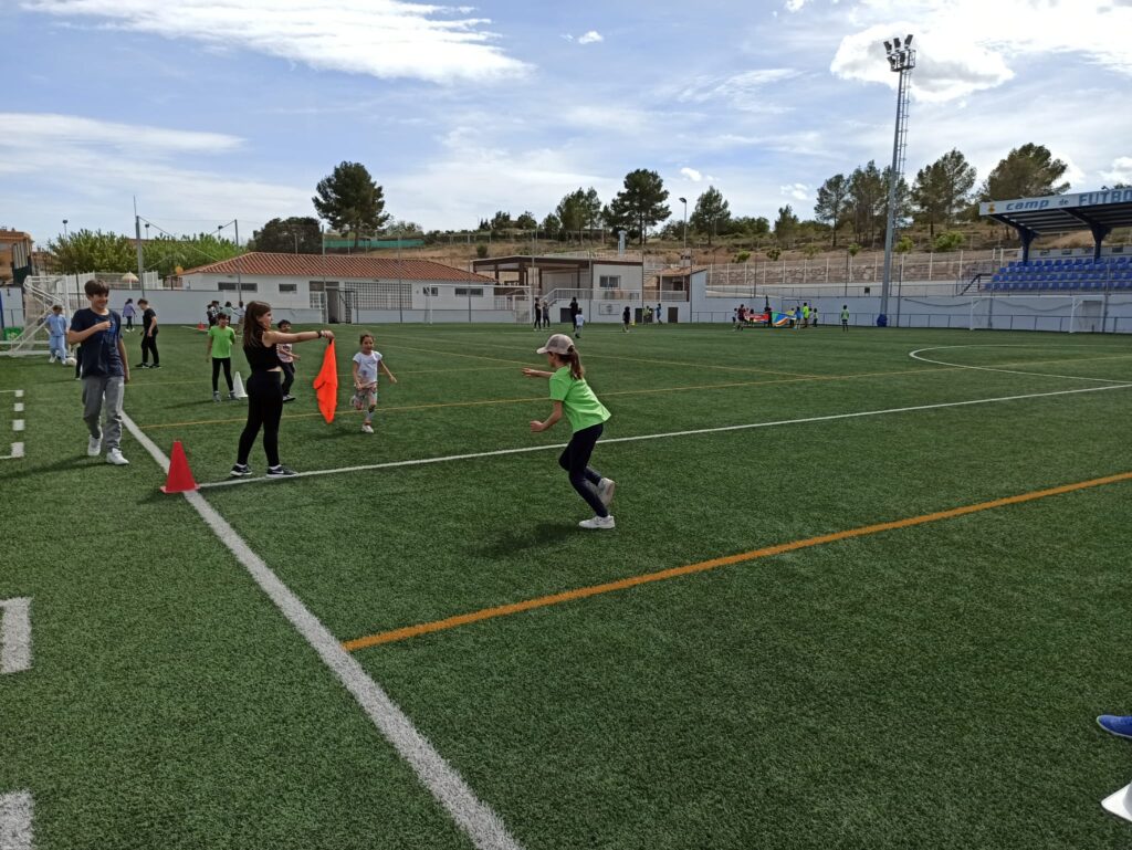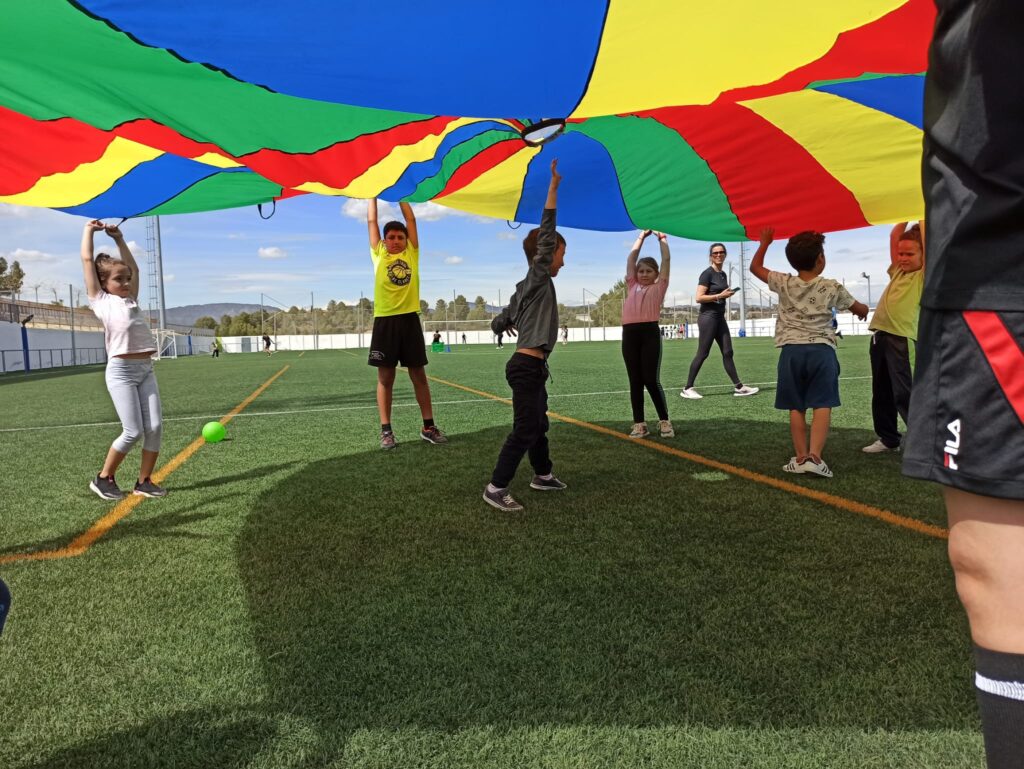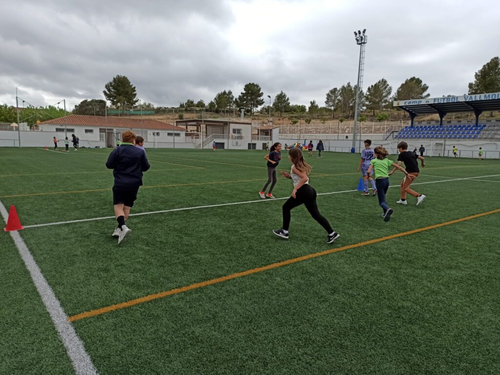 El nostre centre com va sent habitual els darrers anys s’ha inscrit a la jornada i aquest curs hem volgut anar un pas més enllà, hem fet tres jornades al camp de futbol de Vallmoll, dimarts 25 a la tarda l’alumnat de comunitat de mitjans han realitzat 6 estacions de joc (paracaigudes, el joc del cercle atrapat, futbol, joc del mocador, el cuc que passa la pilota i espai de tennis) han estat dirigides i dinamitzades per alumnes de 6è.