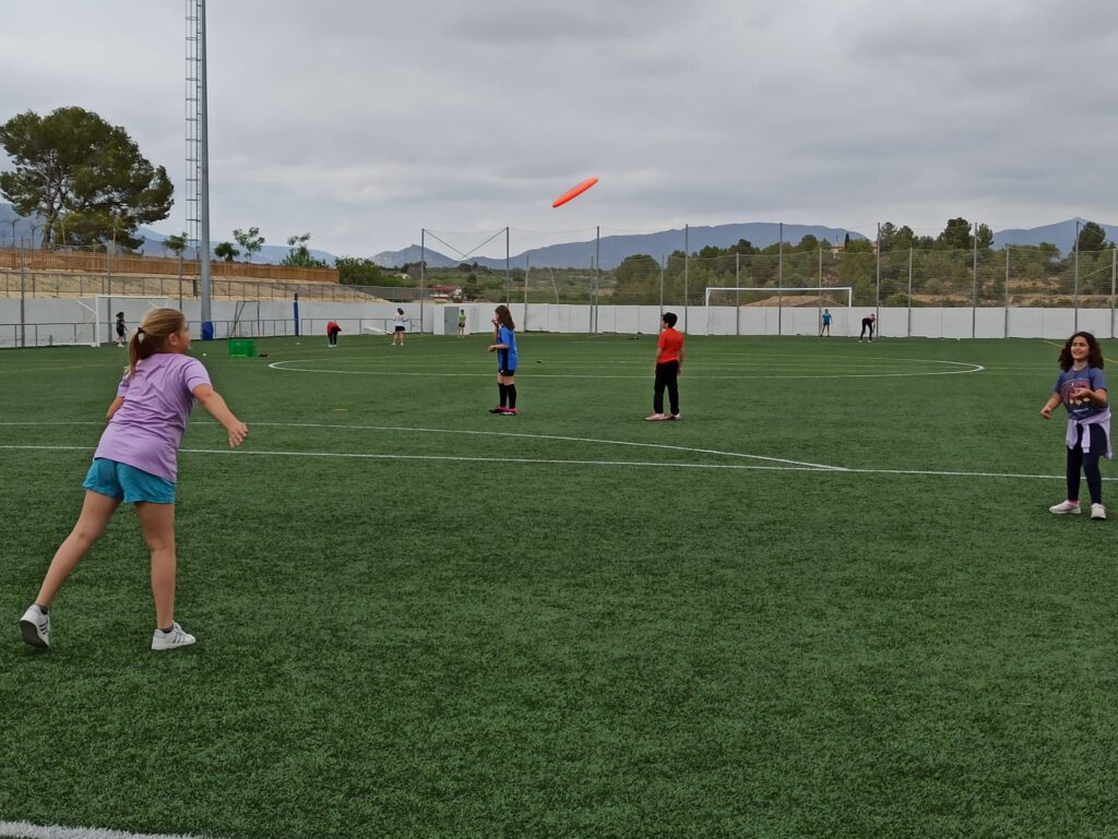 Dimecres 26 al matí han estat els/les alumnes de comunitat de petits que han fet una jornada de joc al camp de futbol i per la tarda la comunitat de grans han realitzat 6 estacions de joc (jocs amb paracaigudes, llançaments de frisbee i pilota de rugbi, futbol, joc de l’aranya, memory d’educació física i tennis).