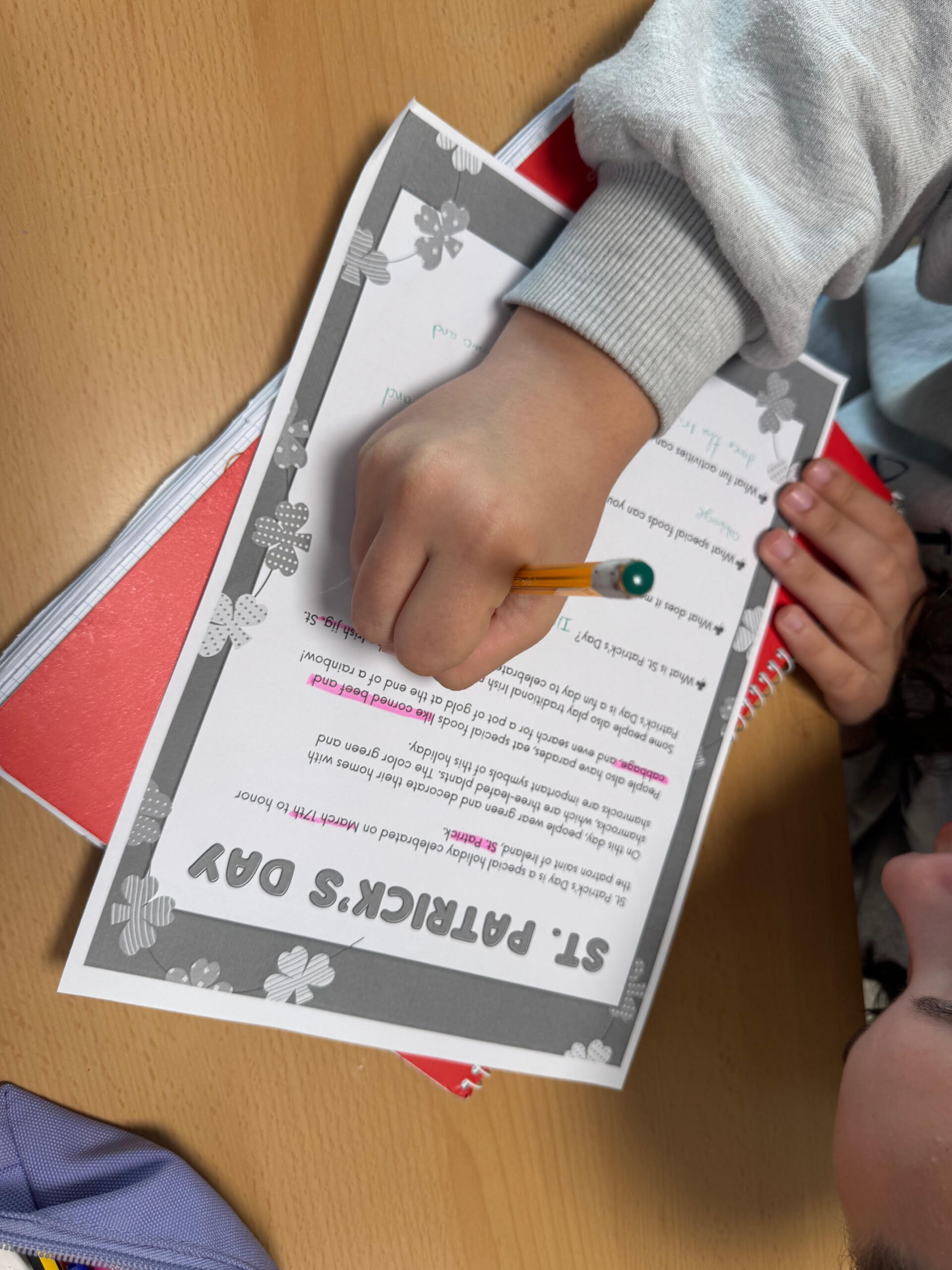 They have completed word scrambles and word searches, described the Easter Bunny, and created and presented their own Easter eggs. In addition, they also learned about St. Patrick’s Day.