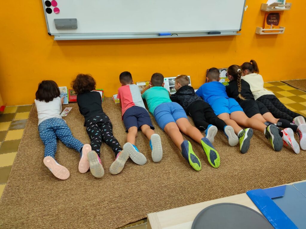 Amb molta emoció han estrenat aquesta nova catifa. Els agrada compartir la lectura ben units… Llegir de manera individual , però a la vegada tenir la sort de compartir amb el company i companya allò què t’ha emocionat.