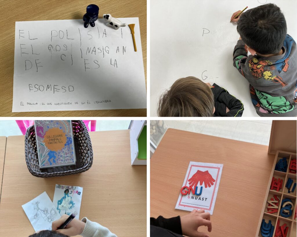 Els dimarts, a l’espai d’I5, fem tallers d’escriptura, sempre adapatant-nos al moment i a les necessitats de cadascú. Aquesta setmana, hem potenciat l’escriptura creativa, a través de col·lecions de superherois i superheroïnes, trobant diferents lletres en un paper d’embalar i escrivint i dibuixant paraules que continguin aquesta lletra, confegint el vocabulari de l’hivern i fent escriptura lliure amb els elements que trobem dins d’una bosseta.