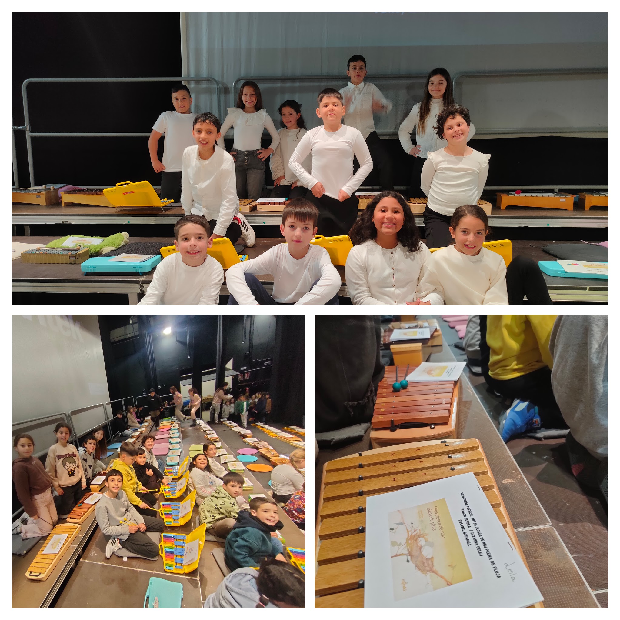El mes de febrer l’alumnat de 4t va participar en la Xilofonada juntament amb moltes altres escoles de Valls i l’Alt Camp fent un concert al Centre Cultural de Valls. Va ser la culminació d’un treball que portem fent des d’inici de curs. Enguany, els poemes estaven extrets del llibre: “Mitja nou plena de pluja” de Ramon Besora i amb les cançons composades per la Rosabel Bofarull.