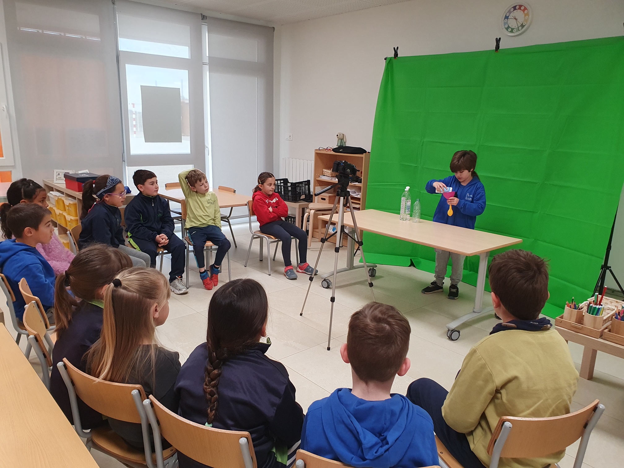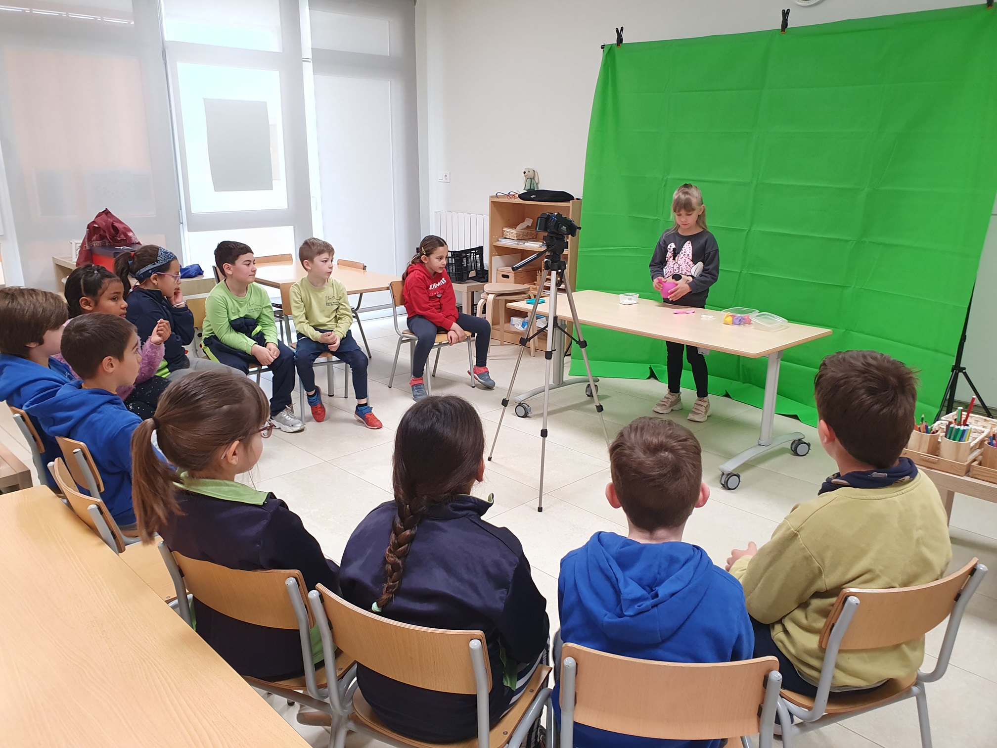 Aquests dies, l’alumnat de segon ha viscut una experiència única enregistrant vídeos amb croma sobre experiments científics. L’alumnat han tingut l’oportunitat de posar-se davant de la càmera, explicar amb seguretat els passos i els resultats dels experiments, i descobrir com funciona la màgia del fons verd.