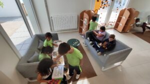 Un espai preparat des de la comissió de festes i la comissió de biblioteca amb contes temàtics de la tardor, castanyada i halloween, a més d’activitats de lectura com endevinalles i mots encreuats.