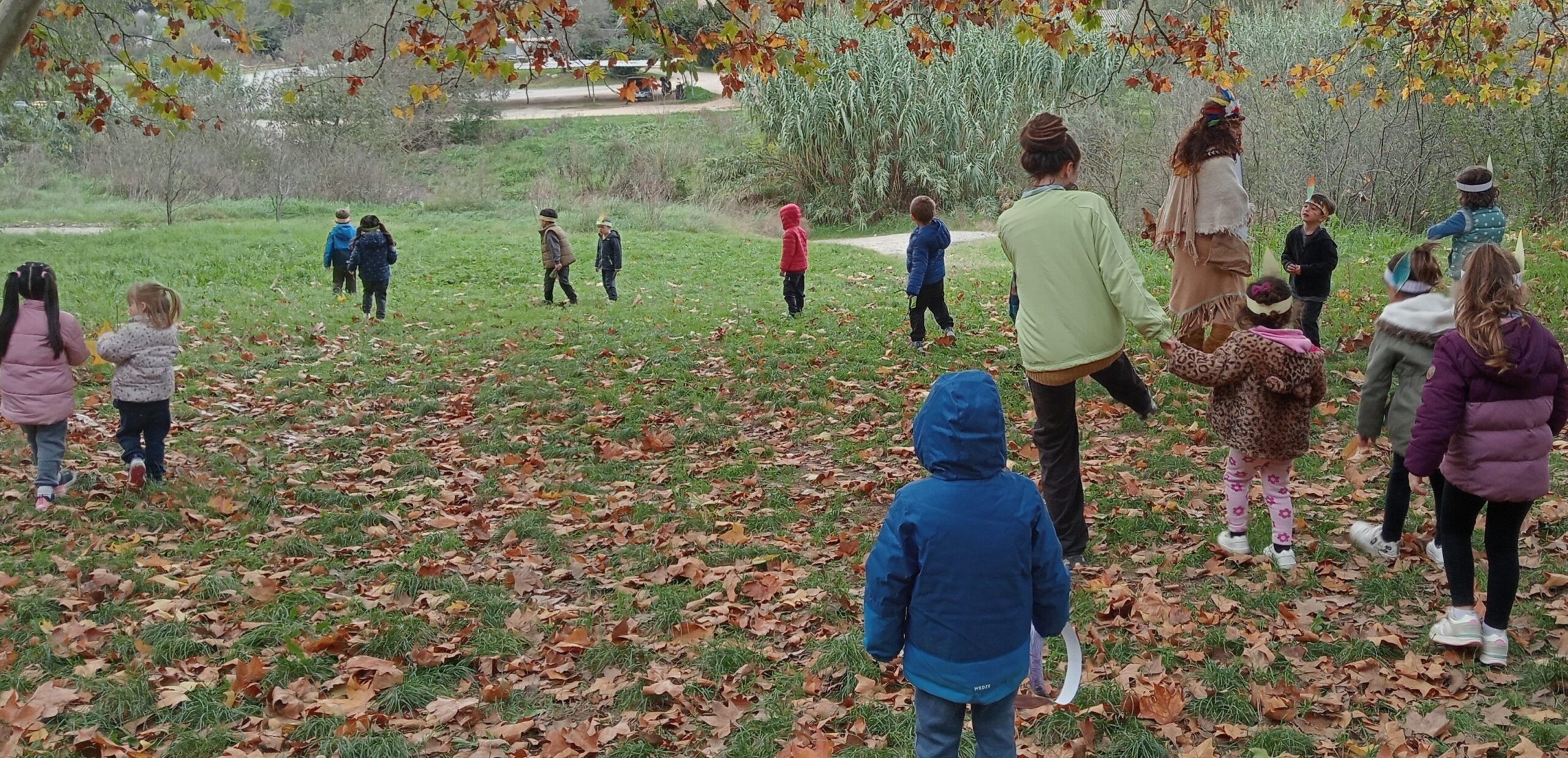 Han anat a Can Pou per conèixer al poble Indi. Allà ens hem preparat pintant-nos la cara i hem fet grups barrejant els nens i nenes de les 4 classes. Ens hem trobat una noia índia que ens ha explicat històries, ha ensenyat algun ritual indi, hem trobat les cabanes de branques on viuen, hem ballat i cantat una dansa i fins i tot, ens hem fabricat una corona amb una ploma per convertir-nos en autèntics indis de les diferents tribus, la vermella, la groga, la verda, la taronja i la blava.