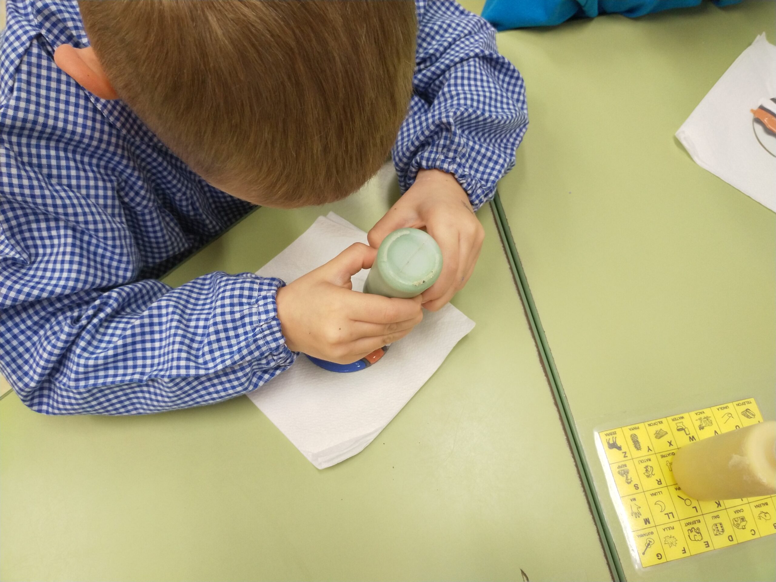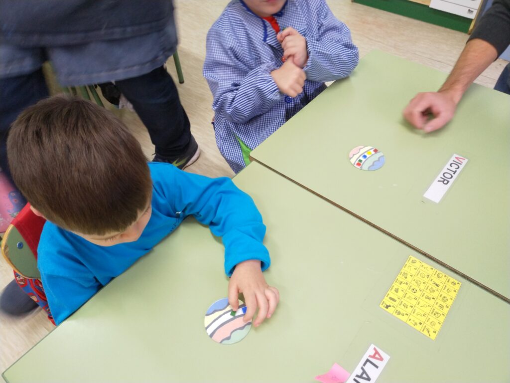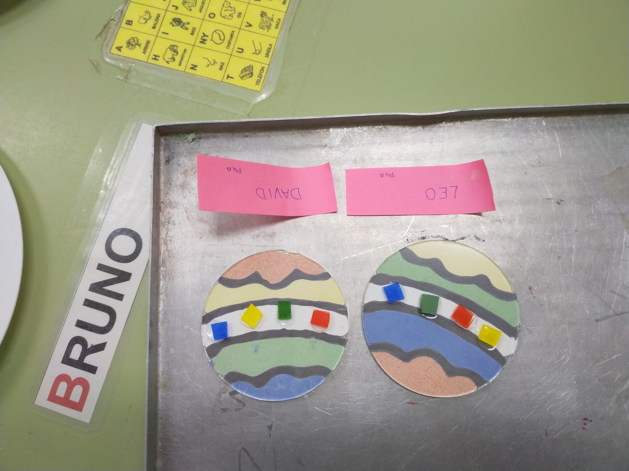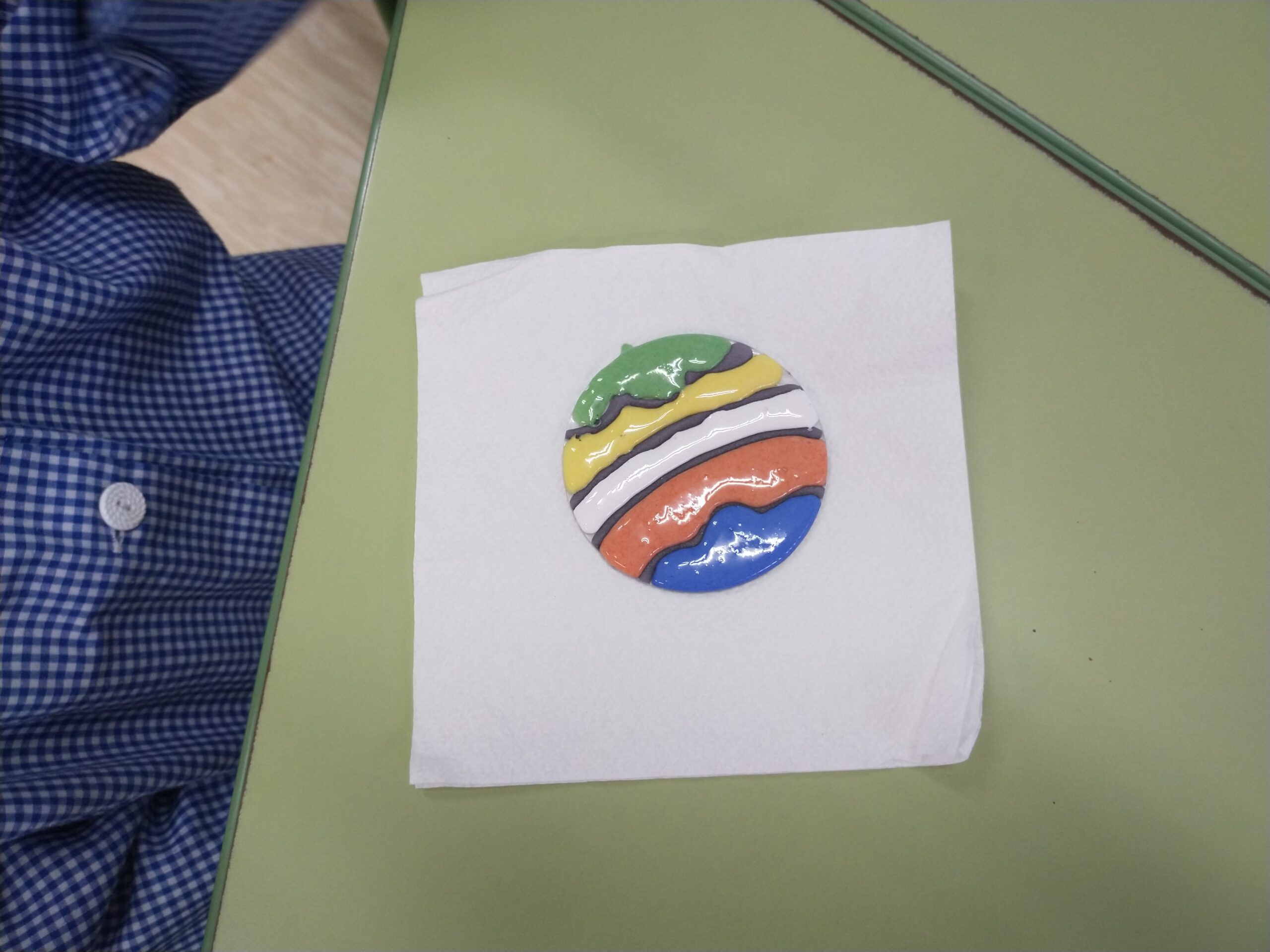 Els nens i nenes de la classe dels Pingüins i de les Zebres hem rebut a la Maria i el Guillem per fer un detall de Nadal amb vidre. Hem pogut decorar amb pols de vidre de colors i cola una bola de vidre molt original.