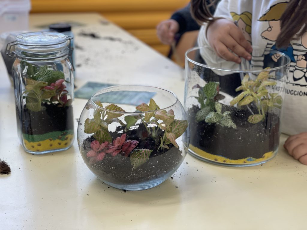 Els i les alumnes del Cicle Inicial hem fet uns tallers per elaborar un petit ecosistema individual. L’objectiu d’aquest taller ha estat treballar la importància de cuidar el medi ambient, el funcionament de la flora i el cicle de la vida. Però, el que més ens ha agradat ha estat poder deixar lliure la nostra imaginació i creativitat per construir terraris propis tan personalitzats com aquests: