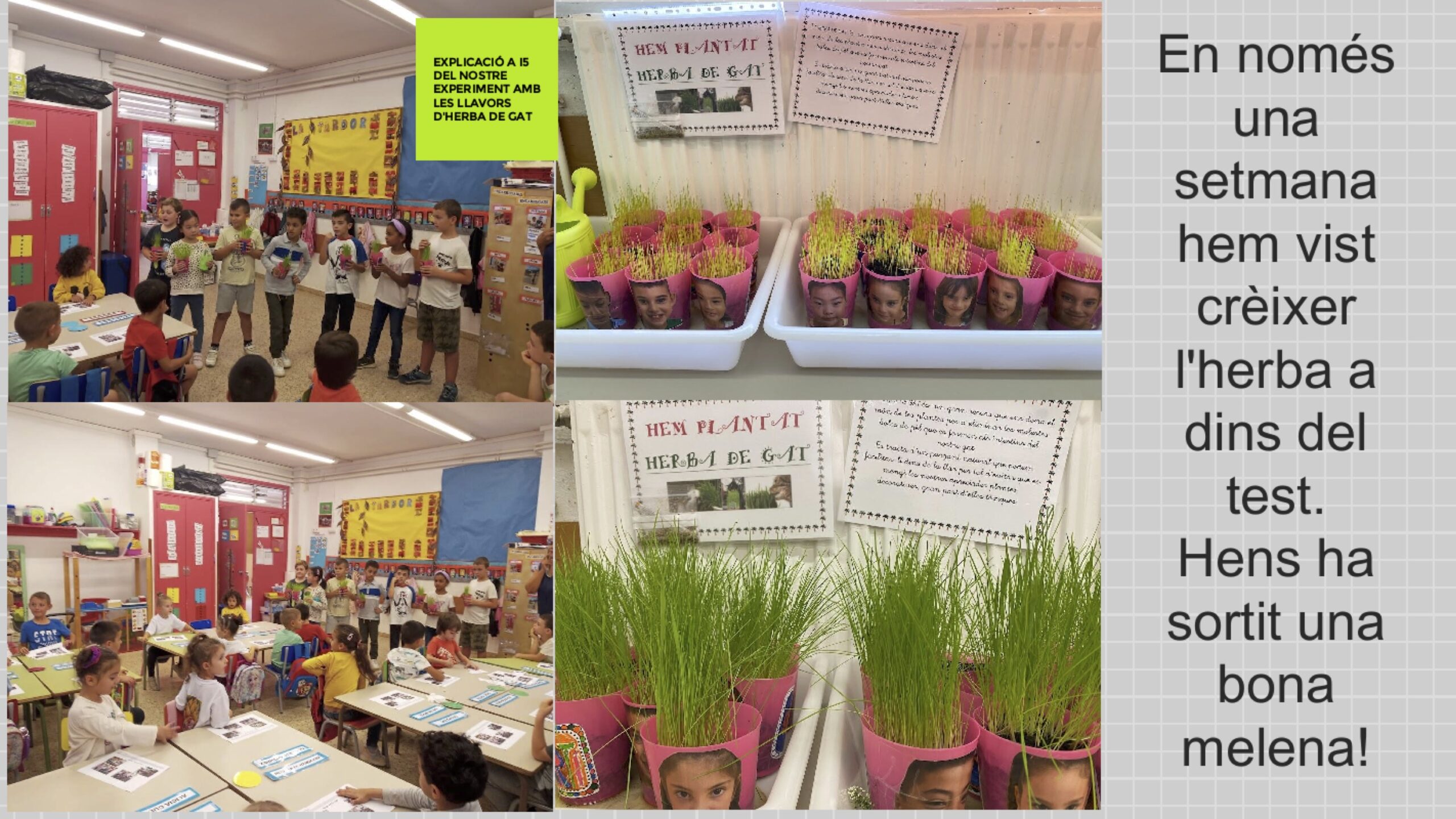 I goita, en poc més d’una setmana ho hem aconseguit! i es que l’herba de gat va ben ràpida.