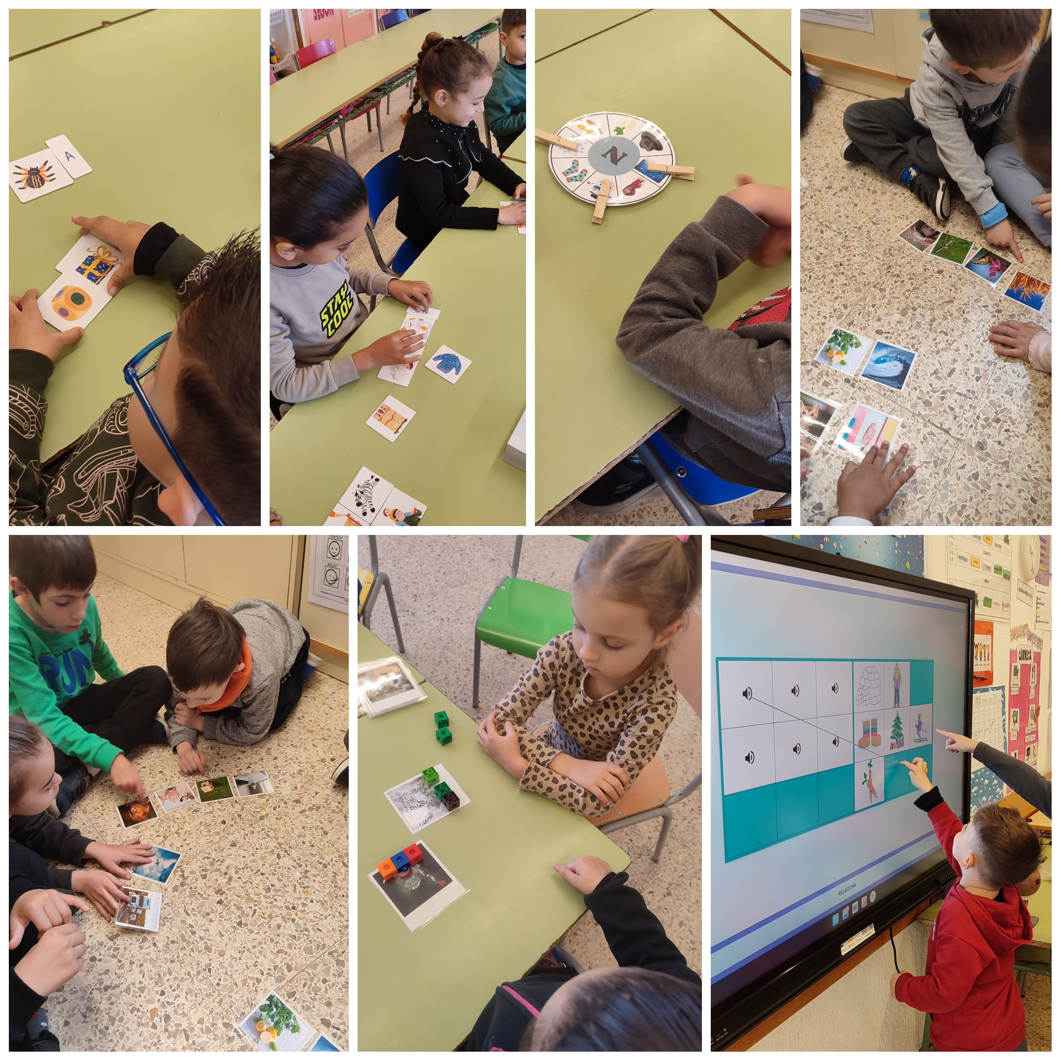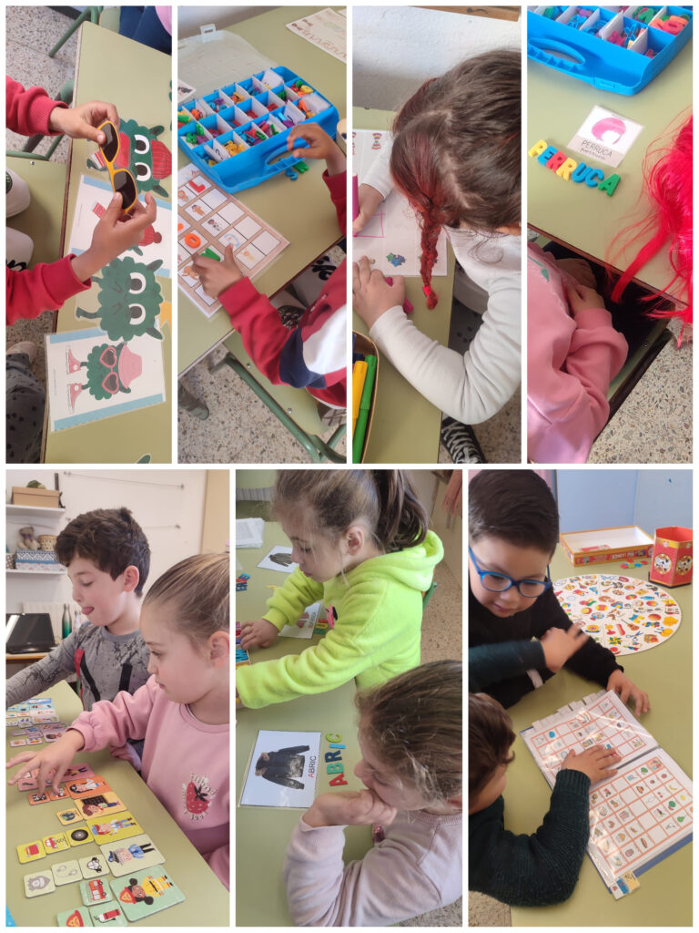 També en petits grups fem activitats variades relacionades amb els temes que es fan a l’aula, com aquest trimestre han estat el carnaval i l’hivern, confegim paraules, fem jocs d’atenció visual, de raonament, de traç, d’emocions, conversa i vocabulari entre d’altres.