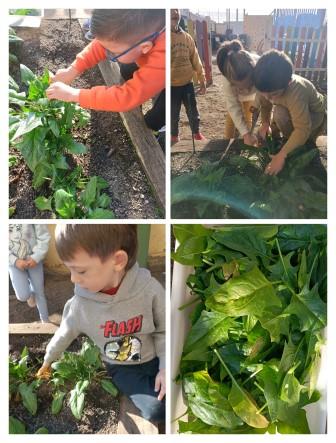 09/12/24El passat dimecres les Momerotetes van anar a l’hort a collir els espinacs. No van estirar les plantes del terra, van tallar les fulles amb una tisora, sense fer mal a les tiges ni a la planta.