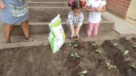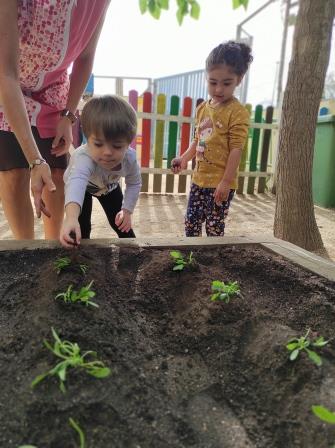 Han trigat una mica més en plantar que la resta de nens i nenes de l’escola, perquè les mongeteres eren encara molt petites per ser plantades.