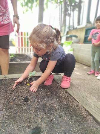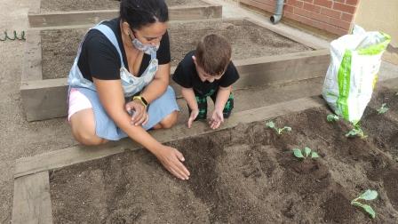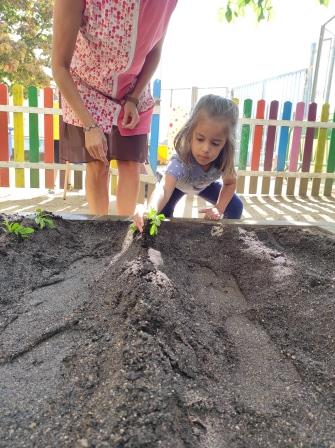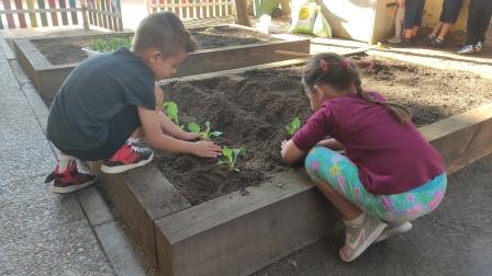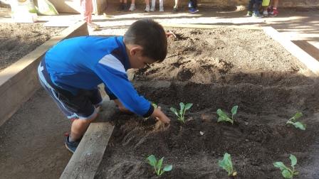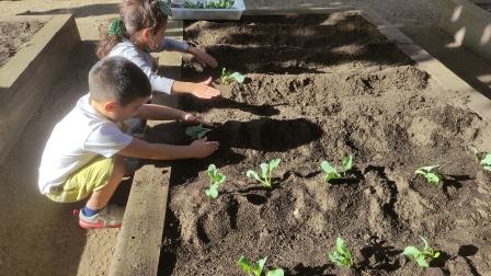 Seguint les instruccions dels i de les mestres, els nens i les nenes van aconseguir fer una bona plantada de bledes, cebes, coliflors i espinacs.