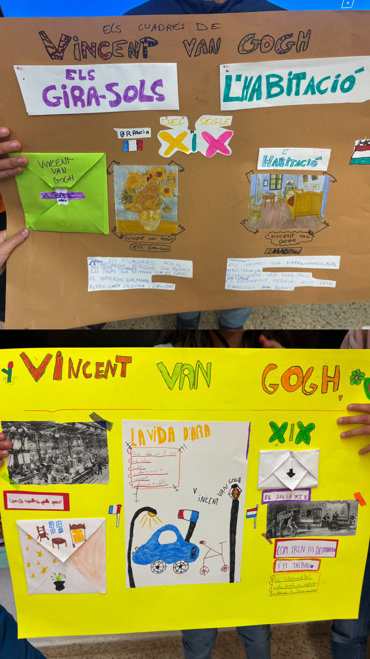 Aquestes presentacions són fantàstiques per poder visualitzar realment què han après els i les alumnes al llarg de totes les sessions en les quals han treballat aquest pintor. Així mateix, a part de les presentacions, la classe també ha pogut experimentar, durant les hores de tallers, amb les tècniques artístiques que emprava Van Gogh en les seves obres.
