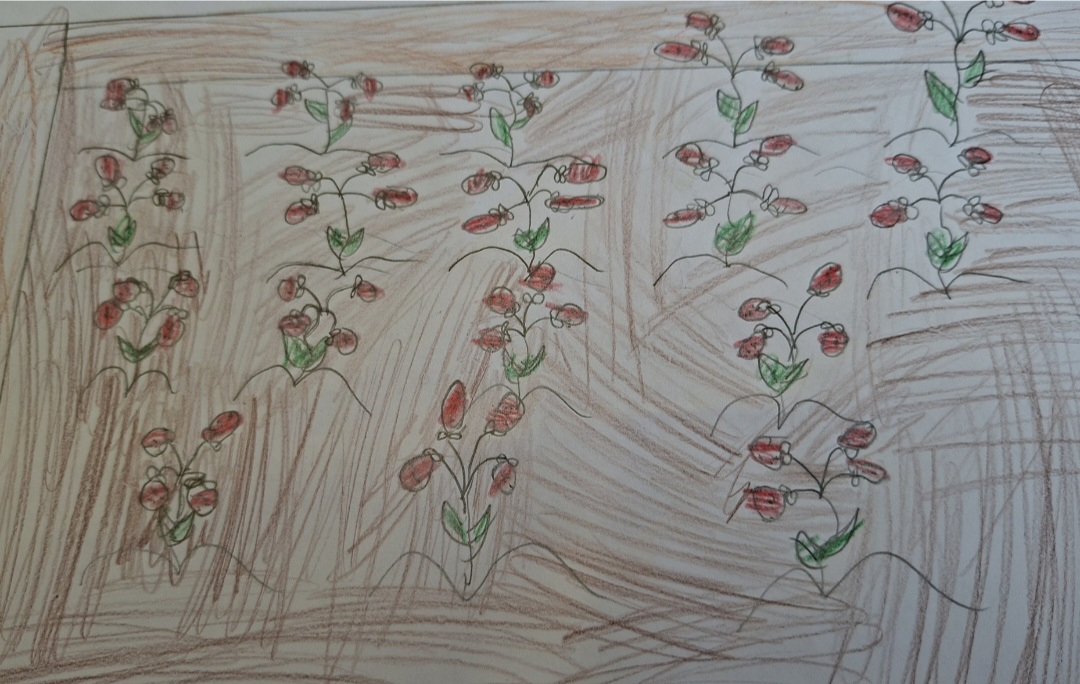 Hem plantat maduixes. Les maduixes tenen pipes petites i algunes vegades són vermelles i blanques i verdes les fulles. (Text de la Dina)