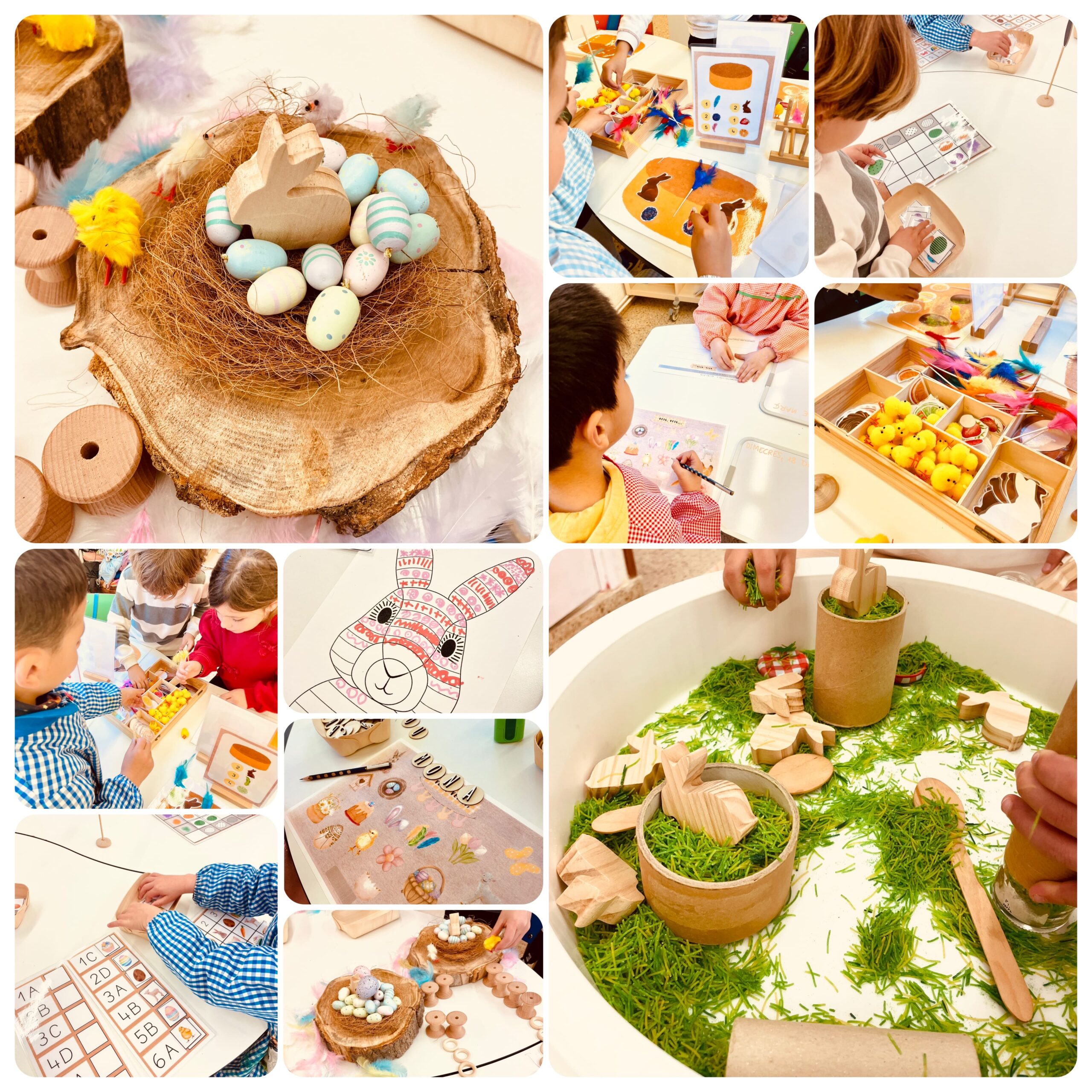 - Mini món: creació de diferents escenaris amb elements significatius de la Pasqua.