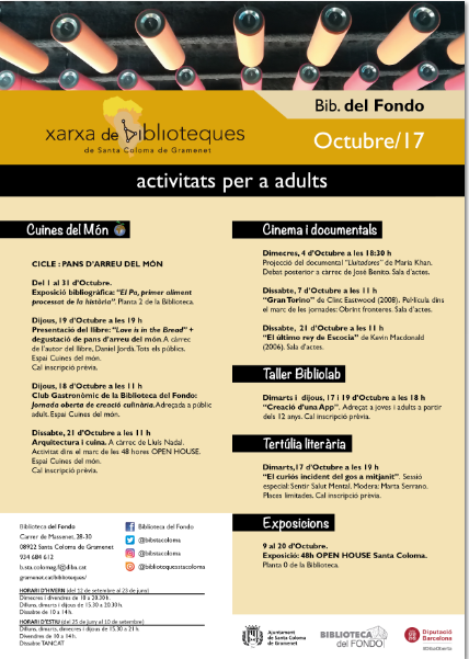 Activitats octubre biblioteca Can Peixauet i biblioteca Central