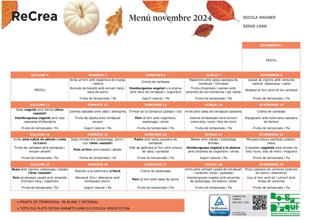 MENÚ MENJADOR NOVEMBRE Llegeix més »