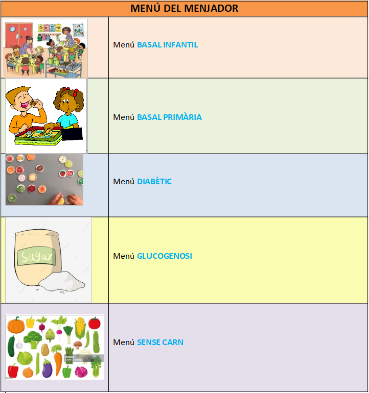 Us deixem el menú del menjador del mes de desembre. MENÚ DEL MENJADOR Menú BASAL INFANTIL Menú BASAL PRIMÀRIA Menú DIABÈTIC Menú GLUCOGENOSI Menú SENSE CARN