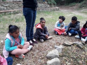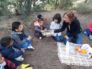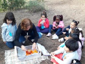Vam caminar pel bosc i vam observar tots els elements. I per sorpresa de tots…..ens va visitar la Castanyera i ens va portar castanyes!!!