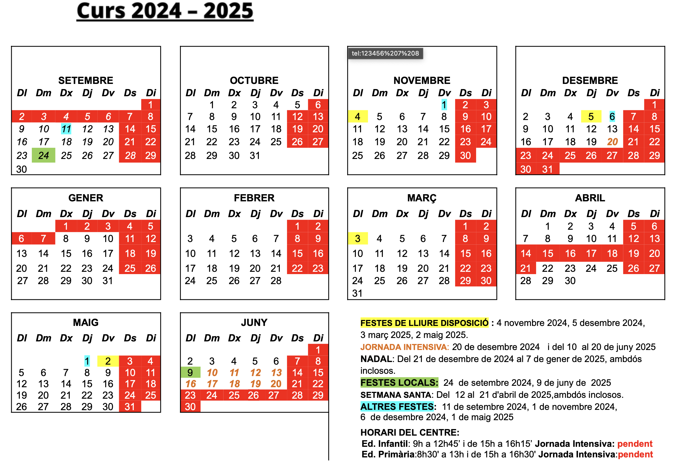 CALENDARI DEL CURS 2024-2025 Feu un comentari / Per Montse / 16 de juliol de 2024 / escola Wagner General / Curs 24-25