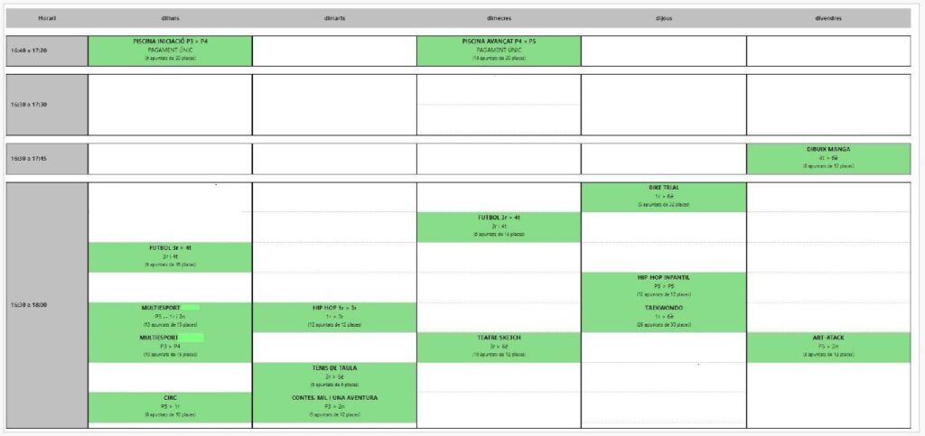 Les activitats extraescolars propicien l’apropament de les famílies a l’escola i garanteixen l’equitat dels nois i noies. El treball de cohesió i valors com respecte i col·laboració, són el nostre eix de treball.