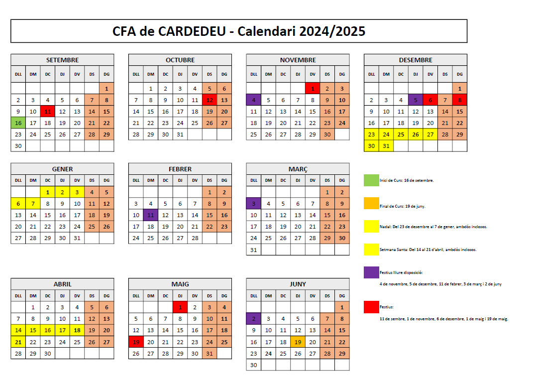 Calendari del Curs