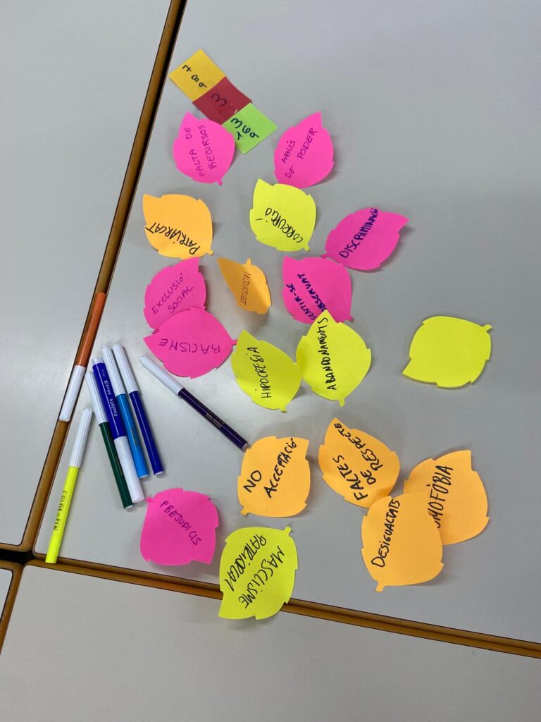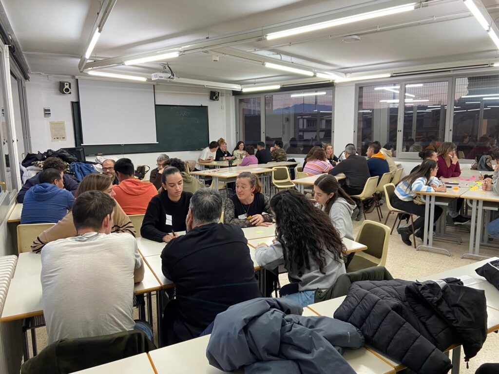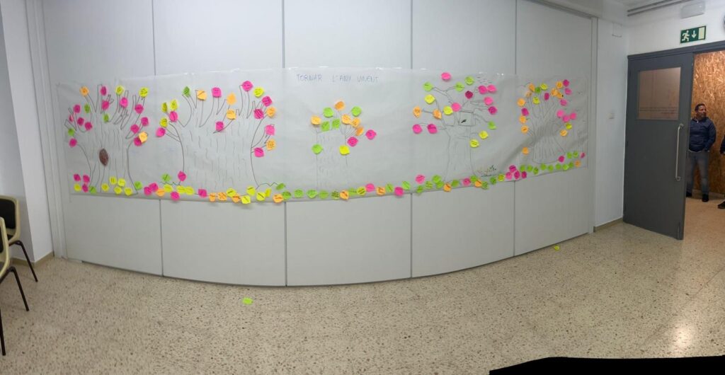 Per segon any consecutiu, un grup d’alumnes d’autoformació vam fer una sortida programada a la Universitat de Vic per participar en una activitat organitzada pels alumnes de tercer curs del grau d’Educació Social. Abans, però, vam aprofitar la sortida per donar un tomb per la ciutat de Vic, ja engalanada de Nadal, tot visitant la catedral i el temple Romà. Un cop a la Universitat, ens vam trobar amb els membres de la fundació Sant Tomàs, i l’Olga, professora i tutora del grau d’Integració Social, que ens va mostrar les instal·lacions de la Universitat. Un cop finalitzada la visita, els dos grups vam poder participar en l’activitat que ens havien preparat els alumnes d’Educació Social. L’objectiu va ser reflexionar i posar en comú, en petit grup, les injustícies que ens afecten al dia a dia i que voldríem deixar enrere, alhora que els desitjos per una vida feliç i millor. Finalment, vam compartir les idees i reflexions amb tot el grup i les vam enganxar en un gran mural preparat per l’ocasió. Va ser una experiència enriquidora per totes les parts implicades que va acabar amb una gran complicitat entre els dos col·lectius