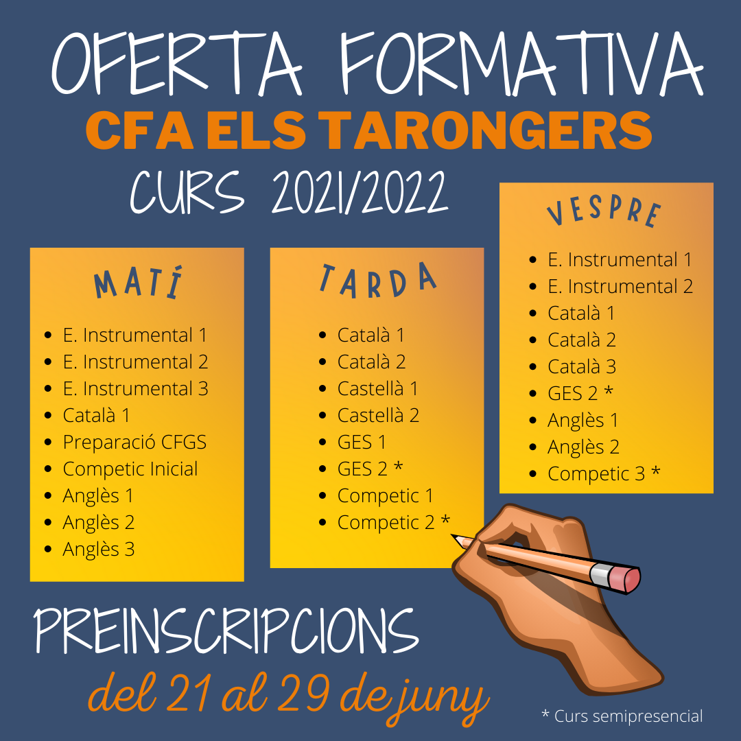 Per a cursos d’Anglès, GES, Català, Castellà, Competic i Preparació de proves d’accès a grau superior.