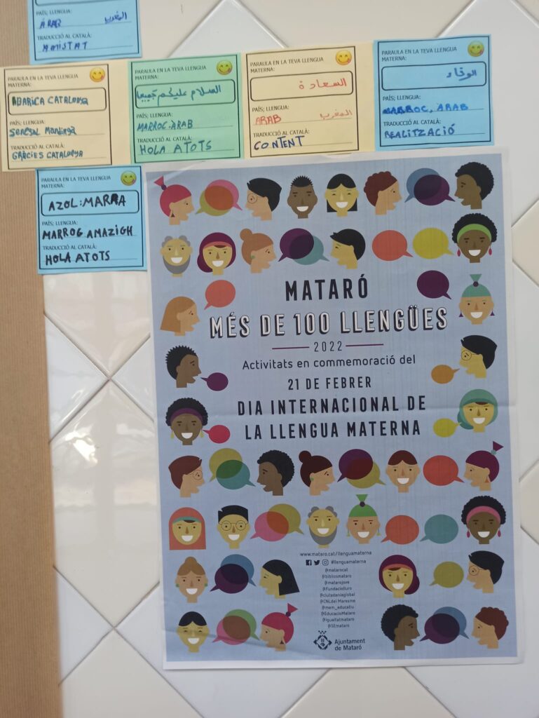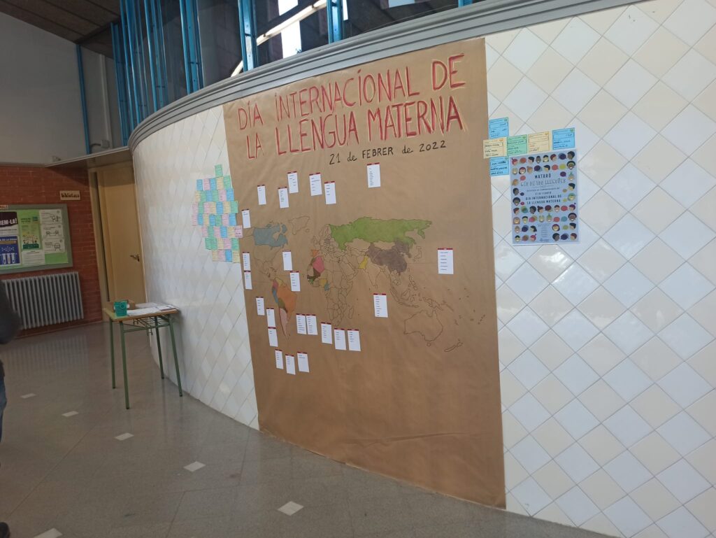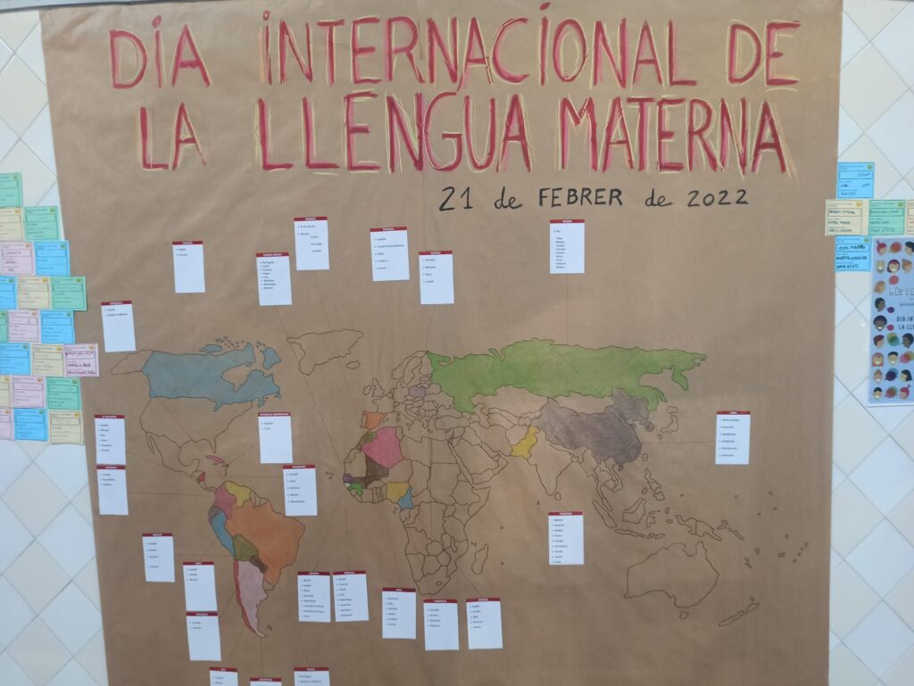 El pròxim dia 21 de febrer, com cada any, celebrem el DIA INTERNACIONAL DE LA LLENGUA MATERNA. Enguany, a l’escola, hem volgut representar la gran riquesa de llengües i cultures que tenim a l’escola dibuixant un mural fet a mà al hall de l’escola.
