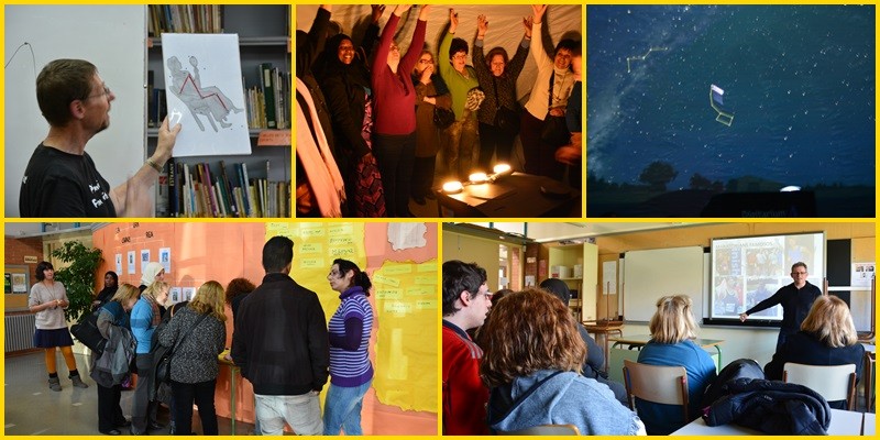 El dimarts vam viure experiències a mans d’en Carles (Fora dÒrbita) i el seu planetari ple d’històries mitològiques … va ser apassionant sortir a la plaça i poder localitzar alguns planetes, estels i constel·lacions a simple vista!