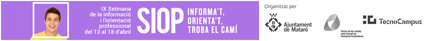 Del 14 al 18 d’abril, l’Ajuntament de Mataró organitza la SIOP, setmana de la Informació i la Orientació Laboral. Inicialment pensada per al jovent, pot ser d’interès per a qualsevol persona que es vulgui formar per reorientar la seva vessant professional.