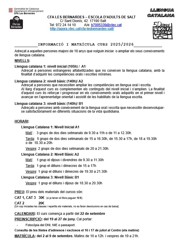 Calendari del curs.