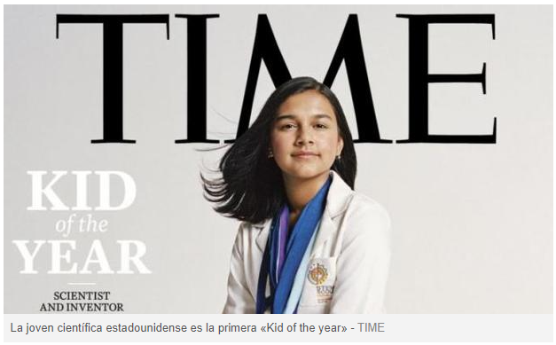 La revista Time empezó a nombrar en 1927 al «Hombre del año». Y de «hombre» pasó a «persona». Este año la influyente revista americana estrena la categoría «Kid of the year». La galardonada es Gitanjali Rao, una niña científica e inventora con la aspiración de «resolver los problemas del mundo».