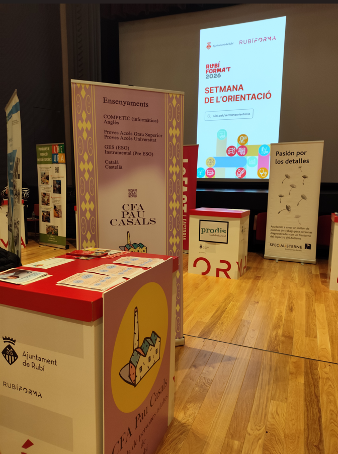 Enguany, el CFA Pau Casals ha participat, dins el marc de la Setmana de l’Orientació 2026, al Saló de la Formació. Juntament amb d’altres centres i institucions de Rubí, hem donat a conèixer els nostres ensenyaments i orientat a persones adultes en les diferents possibilitats per ampliar la seva formació i millorar el seu futur.”