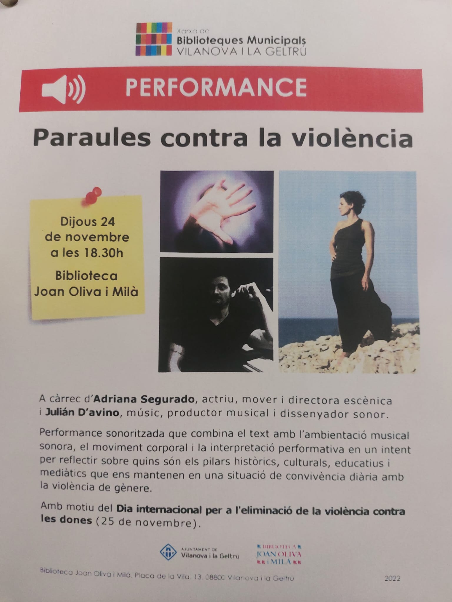 - El passat dijous 24 de novembre els alumnes de català que estan preparant el curs d’accés a cicles formatius de Grau Superior i les proves d’accés a la Universitat per a majors de 25 i 45 anys, van assistir a la xerrada Paraules contra la violència a la biblioteca Joan Oliva de Vilanova i la Geltrú.