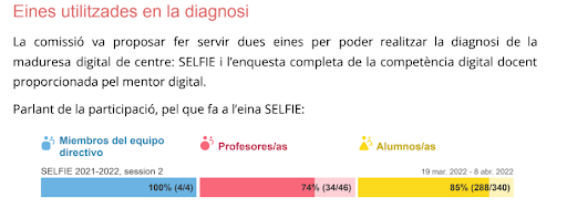 Cada centre ha de seleccionar les eines que cregui millor segons la seva maduresa digital i segons el treball realitzat prèviament.