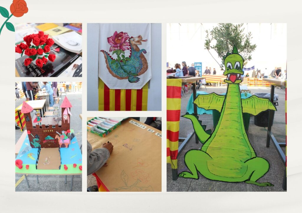 Avui hem celebrat la diada de Sant Jordi al pati de l’escola, convertint-lo en un espai de trobada, convivència i cultura compartida. Al llarg de la jornada, l’alumnat ha pogut gaudir d’un ambient diferent, amb activitats pensades per apropar-nos a aquesta tradició tan arrelada i, alhora, reforçar els vincles dins la comunitat educativa.