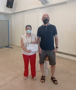 Maria Lluïsa Carrera rep el diploma del primer premi amb el director del centre