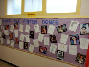 Per deixar la nostra petjada en aquest 8M, nosaltres també hem volgut pintar dones. Els nostres dibuixos ara omplen el passadís de l’escola, exposats al costat de les obres d’aquestes grans artistes.