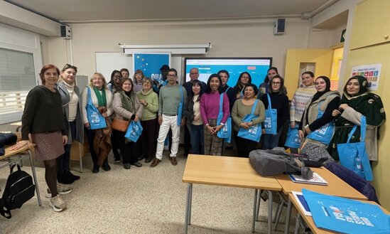Aquest dimecres, 5 de febrer, s’ha organitzat un acte de formació i presentació de parelles lingüístiques al Centre de Formació d’Adults Bellavista, de les Franqueses del Vallès. La majoria de parelles s’han pogut formar entre alumnes dels cursos de català, com a aprenents, i alumnes d’altres matèries (anglès i informàtica), com a voluntaris.