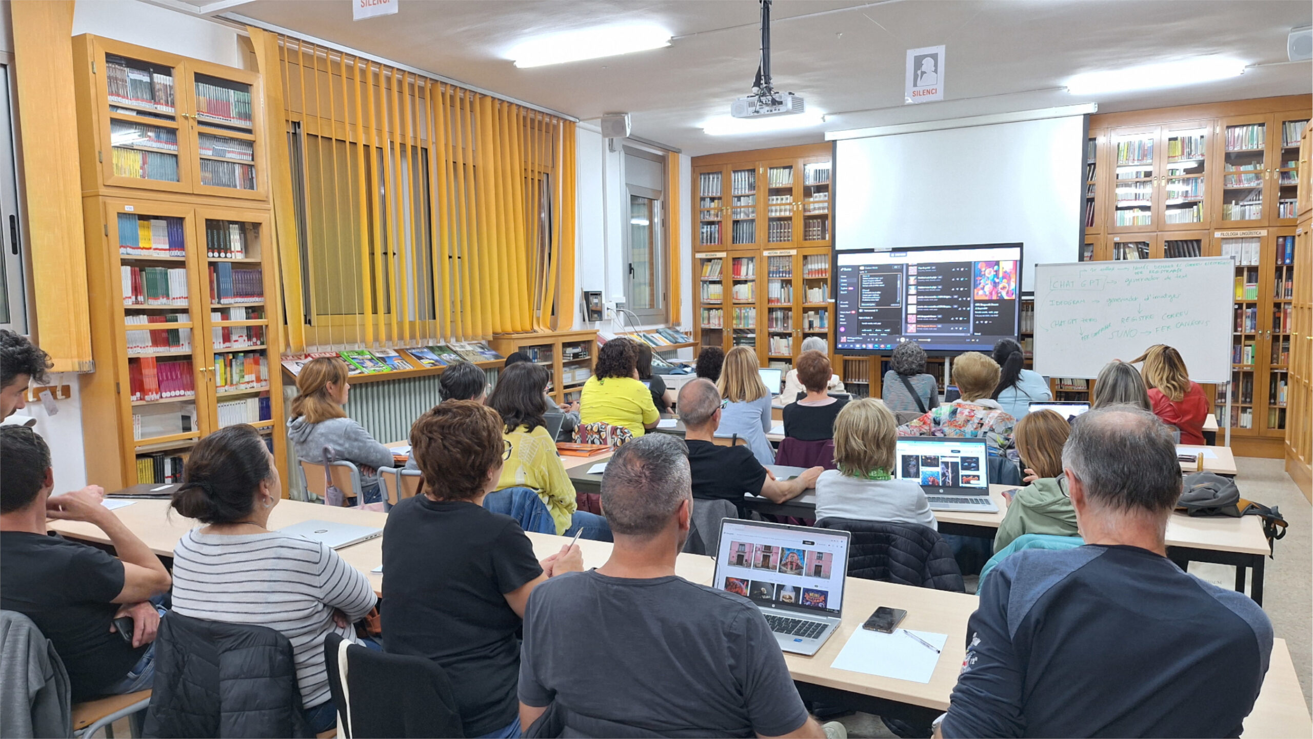Durant la sessió, els participants van explorar diferents eines d’intel·ligència artificial de manera pràctica i aplicable a la vida quotidiana. Amb GHAT GPT, els alumnes van tenir l’oportunitat de conversar amb un assistent virtual i descobrir com funciona la generació automàtica de textos. També van experimentar amb Ideogram, una eina que permet crear imatges a partir de text, i es van divertir elaborant diverses creacions visuals.
