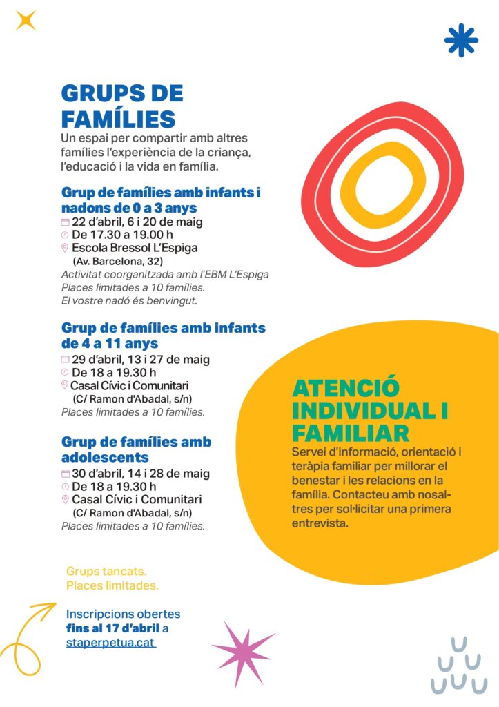 Per assistir als Grups de Famílies s’ha de fer INSCRIPCIÓ (aforament limitat fins a 10 famílies).
