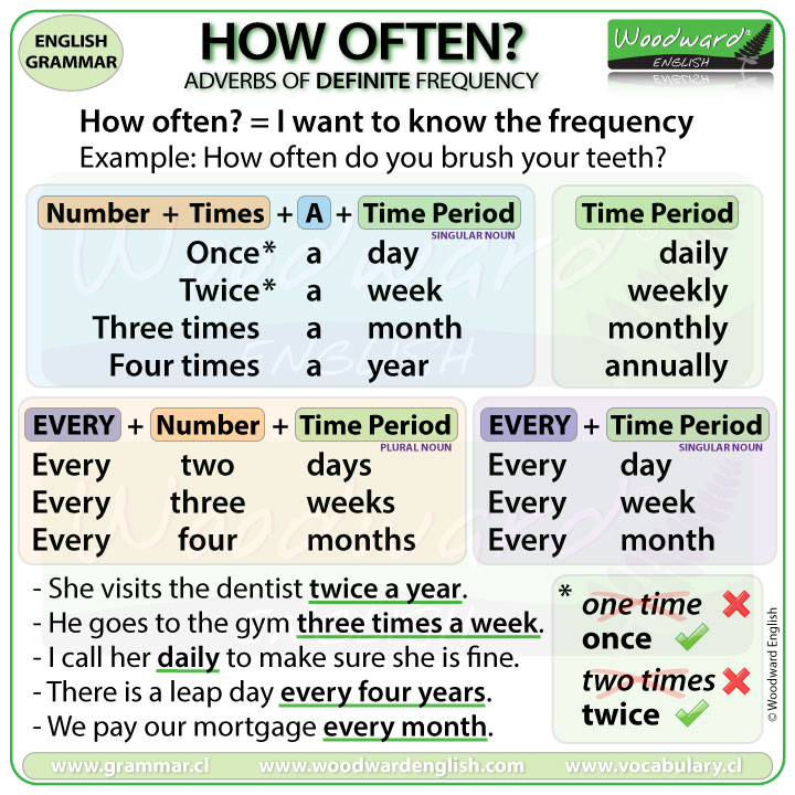 Exercici per practicar els adverbis i les expressions de freqüència: exercici 1, exercici 2.