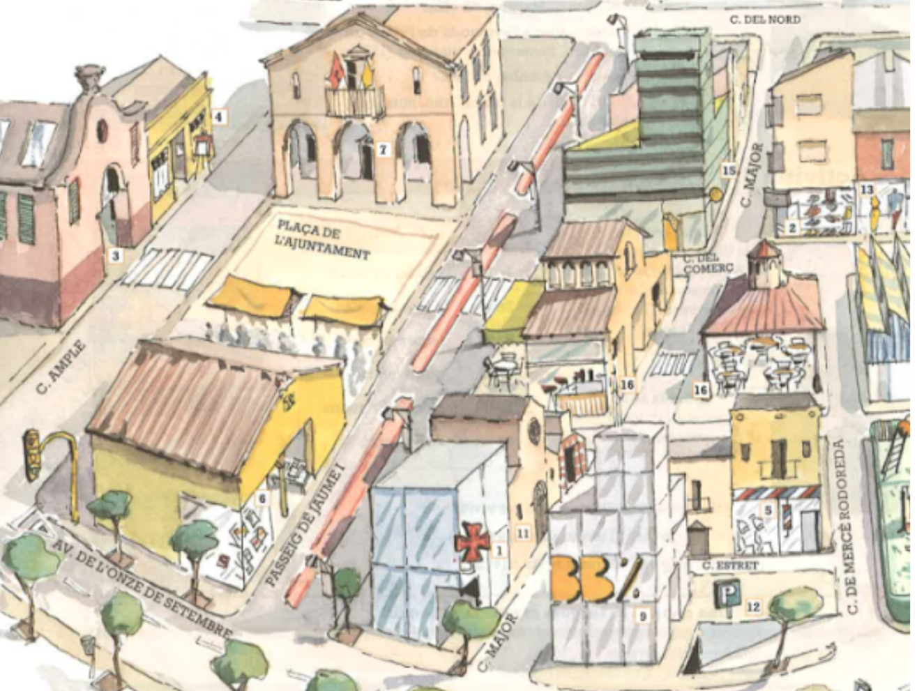 M’indiques com anar des de l’ajuntament fins a la farmàcia?