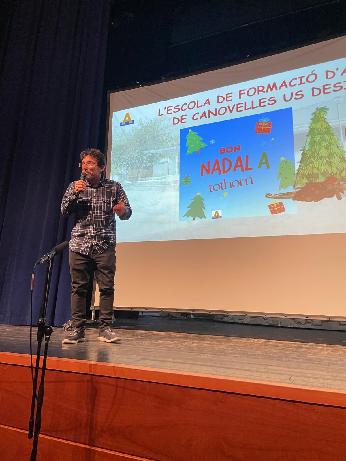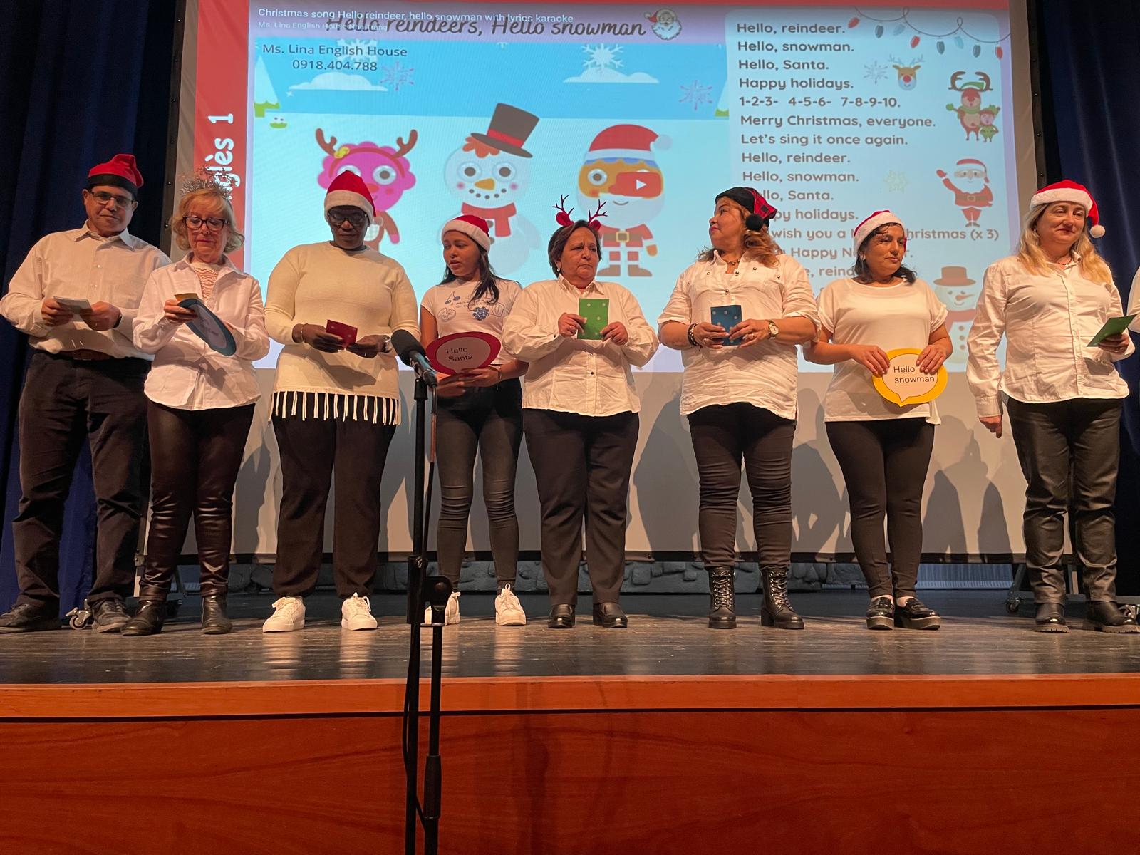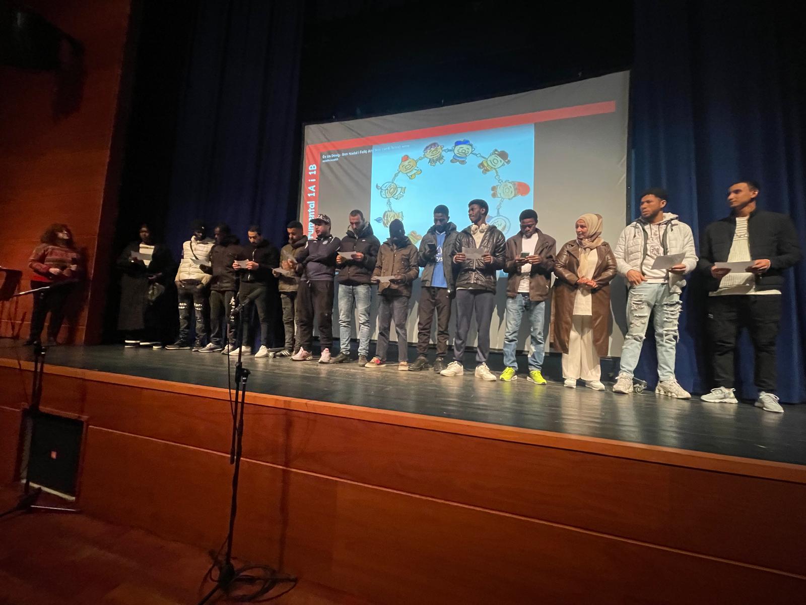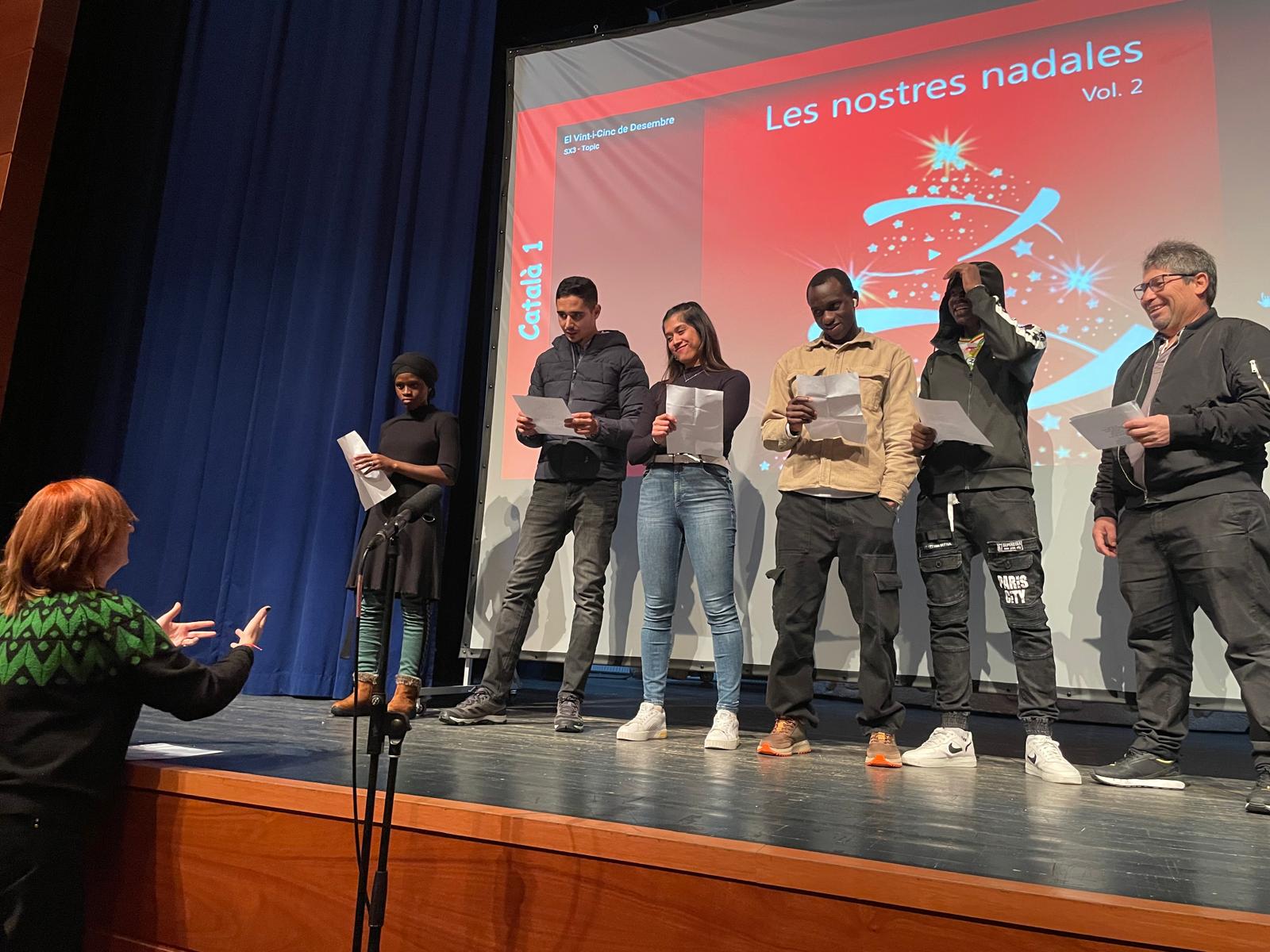 Divendres, 20 a la tarda, el darrer dia del primer trimestre, hem fet un concert per a celebrar el final del primer trimestre. Tots els grups han preparat una petita actuació. Després de l’actuació esmentada, tots els assistents hem fet cagar el tió. Per acabar, hem compartit menjars típics dels nostres països d’origen. Ha estat una festa molt bonica i emotiva.
