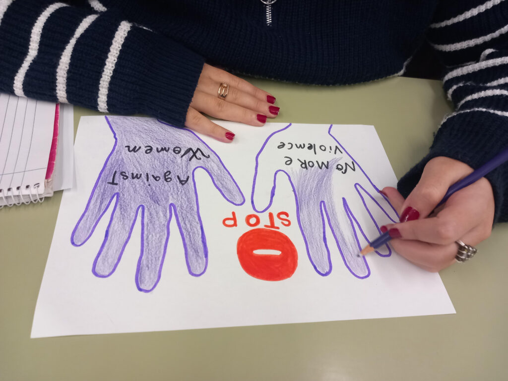 El passat dilluns 25N, els alumnes de GES 2 del CFA CANOVELLES van dibuixar les seves mans de color lila amb un missatge contra la violència sobre les dones.